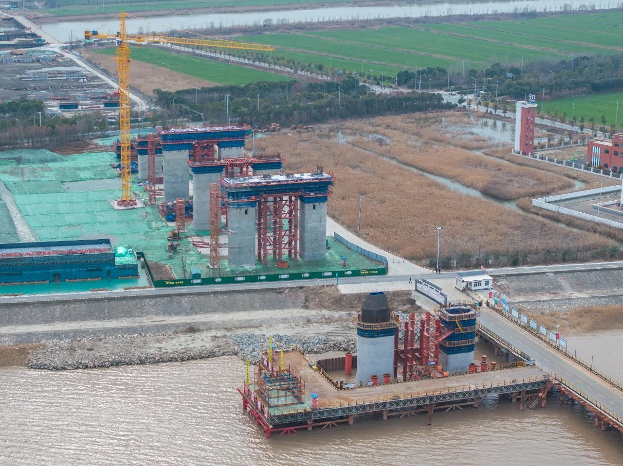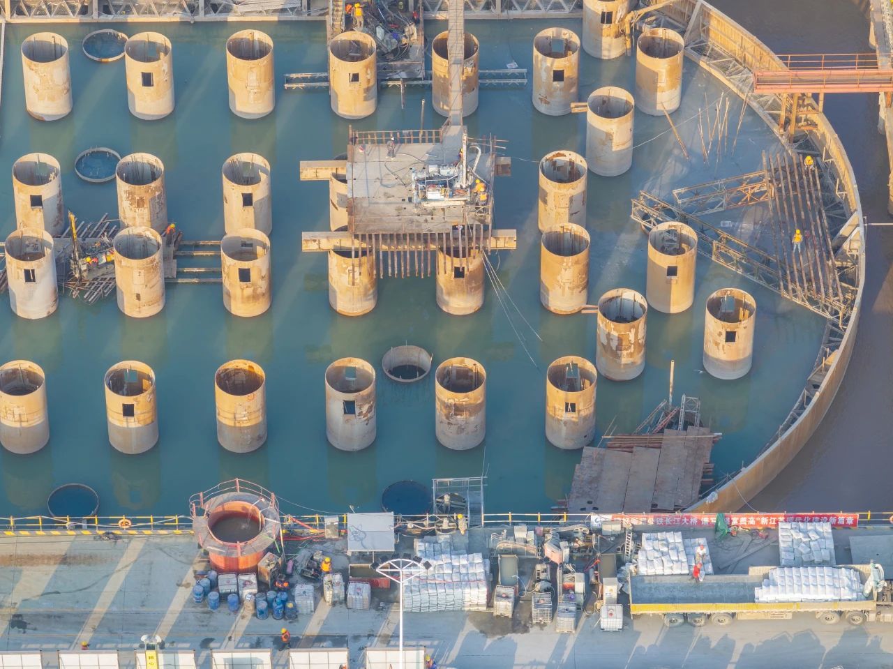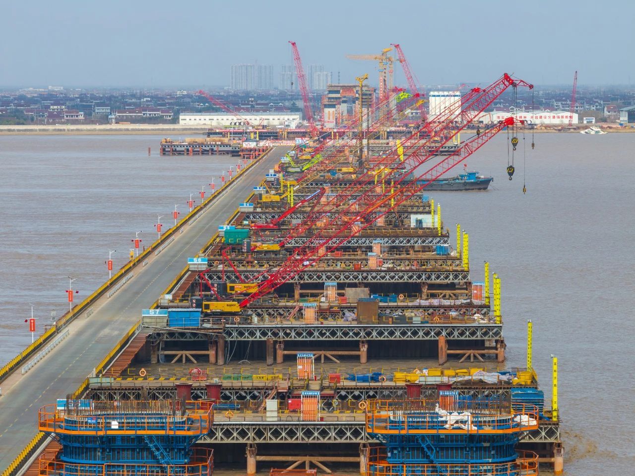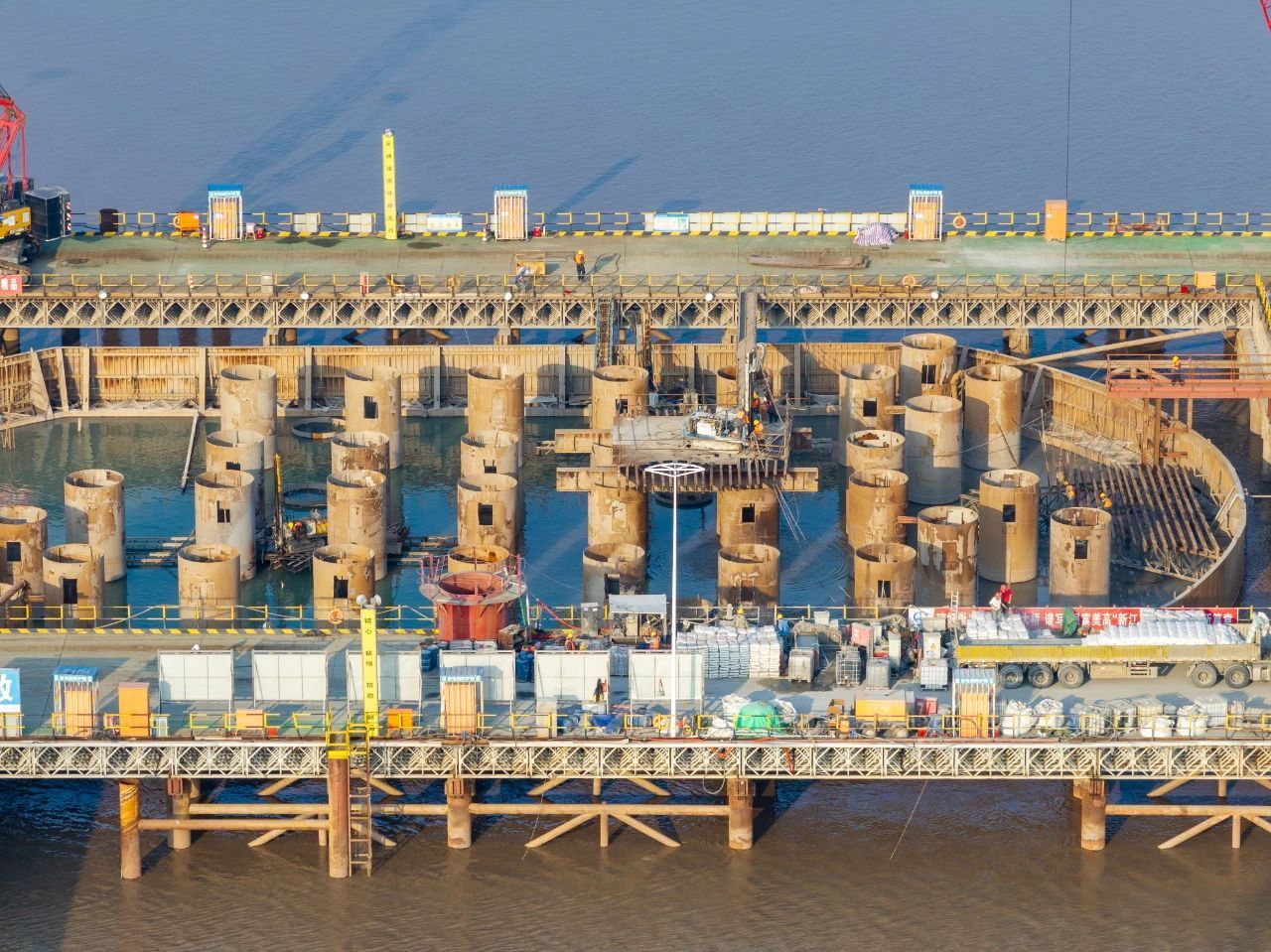 由中铁大桥局承建的世界在建最大跨度双塔双索面公铁两用无砟轨道斜拉桥——崇启公铁长江大桥正在火热建设中。