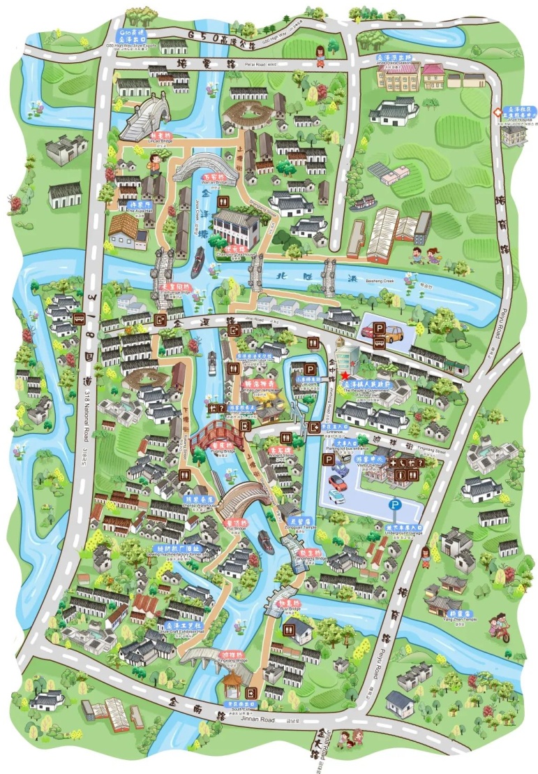 金泽古镇手绘地图