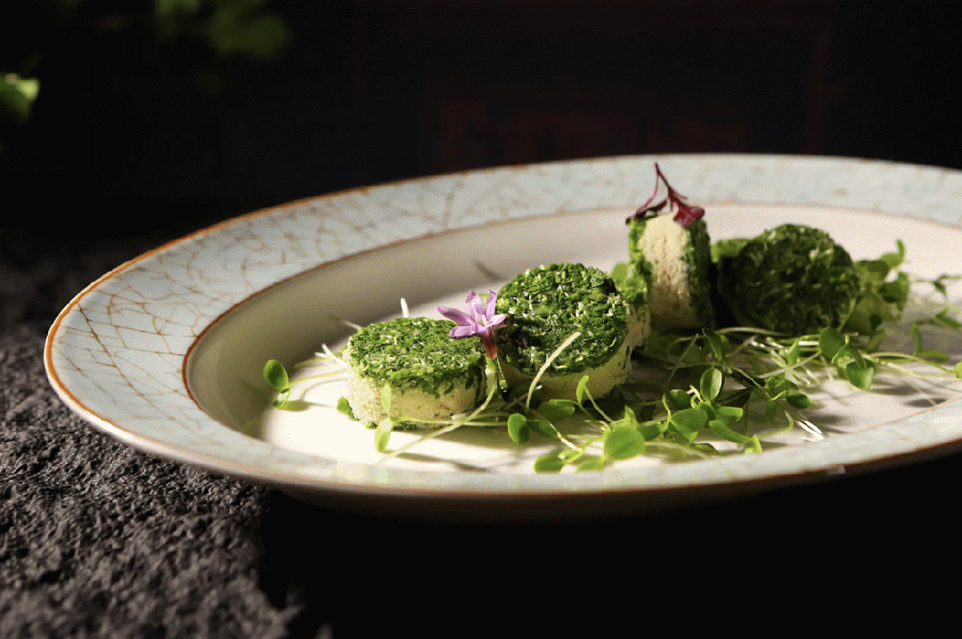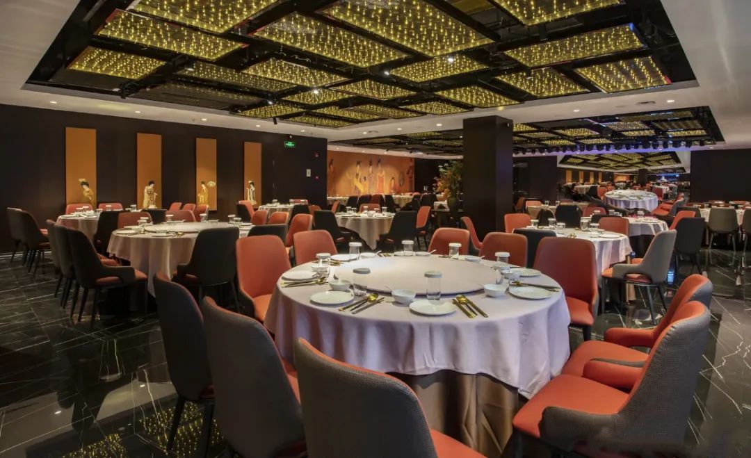 東淓 · 蘇宴上海首店落户在上海丽笙精选海仑宾馆三楼,其环境别具一格,墙上以唐代仕女图为装饰,餐厅内时不时还会有专人现场弹奏古筝。