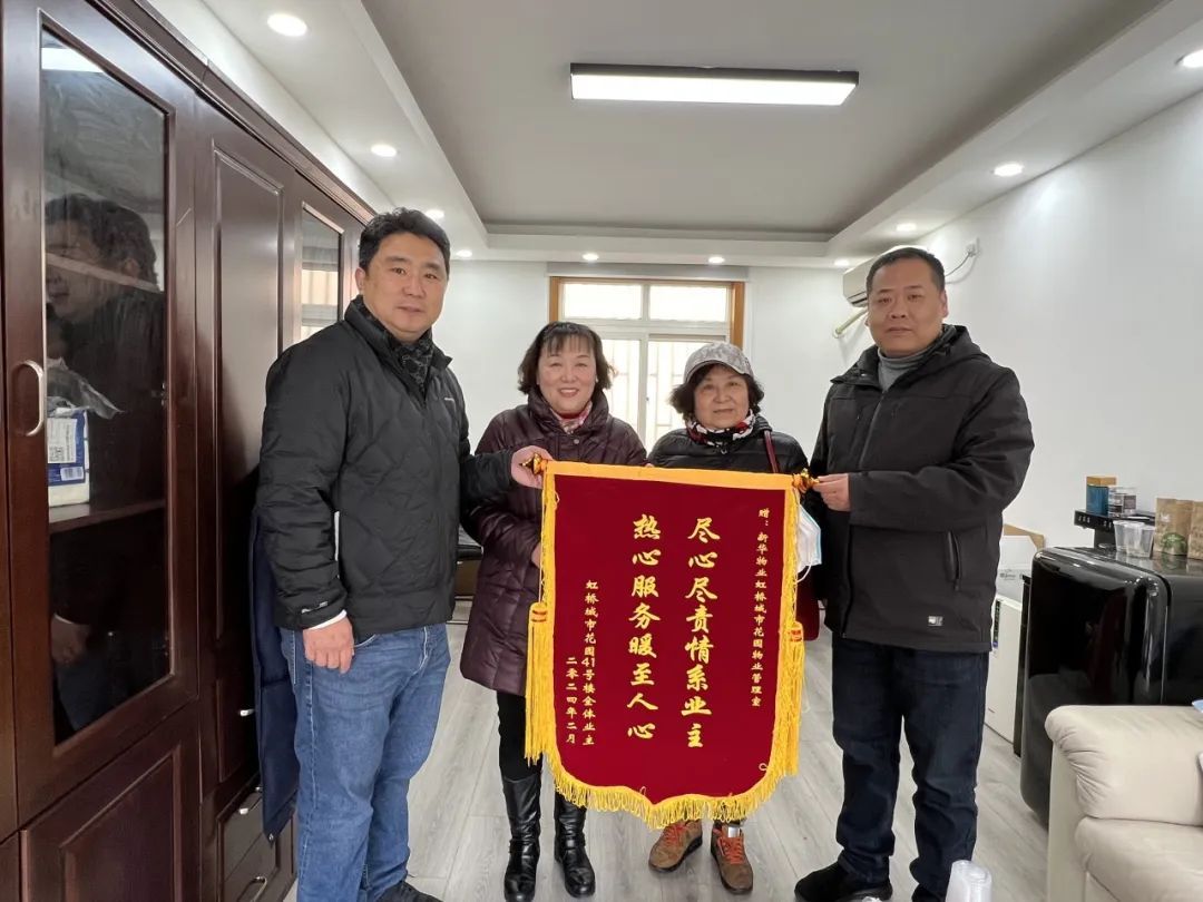 来自新华物业虹桥城市花园小区的锦旗与感谢信
