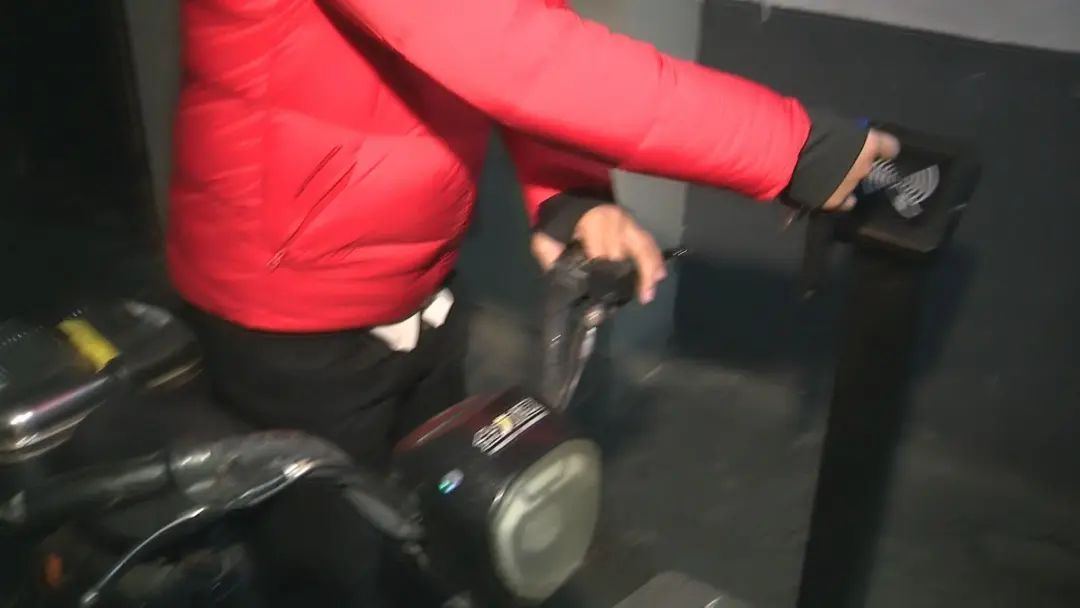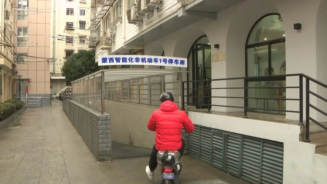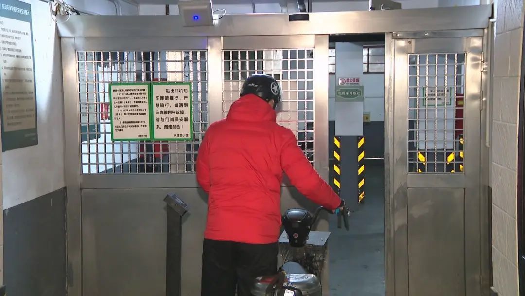 天空下着蒙蒙细雨,蒙西小区智能化非机动车停车库不时有电瓶车进出。记者在现场看到,进出停车库都需要刷卡进行。