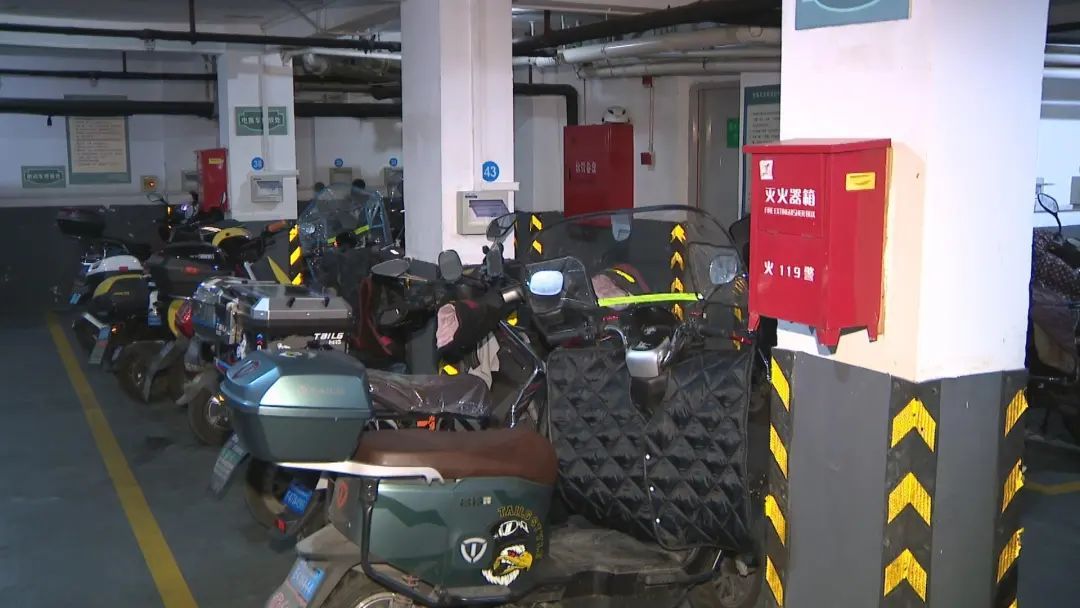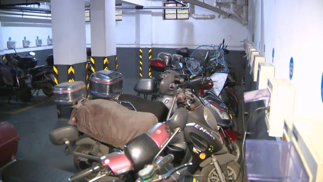 而在每个电瓶车停车位前都安装了充电装置,居民只要刷卡,充电装置就会自动进行充电。