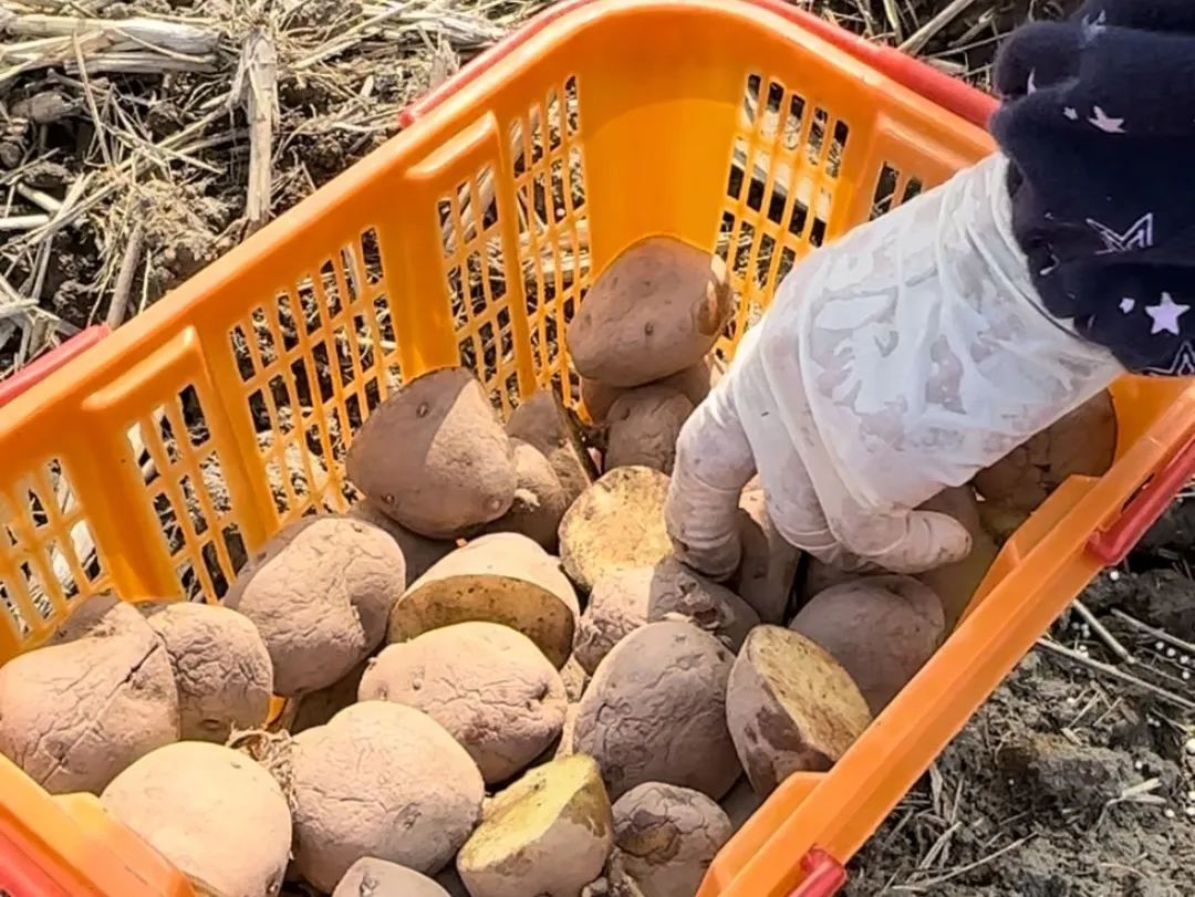 初春的太北村农田迎来一片繁忙,只见农人们个个干劲十足,在收割后的稻田内栽种新品种的土豆。“收割后的稻田,拖拉机打2-3遍,把地犁松之后开始开沟,按照行间距40厘米开小沟,小间距30厘米栽种,再覆盖厚度15厘米左右的泥土,确保之后生长的土豆不会出青、口感更糯。”太北村党总支书记、村委会主任张欢峰在田间熟练地向记者演示土豆播种的技巧。据江渝合作社负责人胡正军介绍,“此次引进的湖北恩施土豆在当地已有300多年的栽种历史,比我们常见的南方土豆个头更小,皮黄肉黄,口感软、糯、香、绵。恩施土豆的生长周期在3个月左右,今年一共试种了3亩,预计在5月左右可以收获,希望能够还原口感,带给市民不一样的味觉体验。”