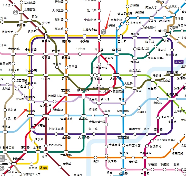 黄色的3号线与紫色的4号线有不少站是重合的