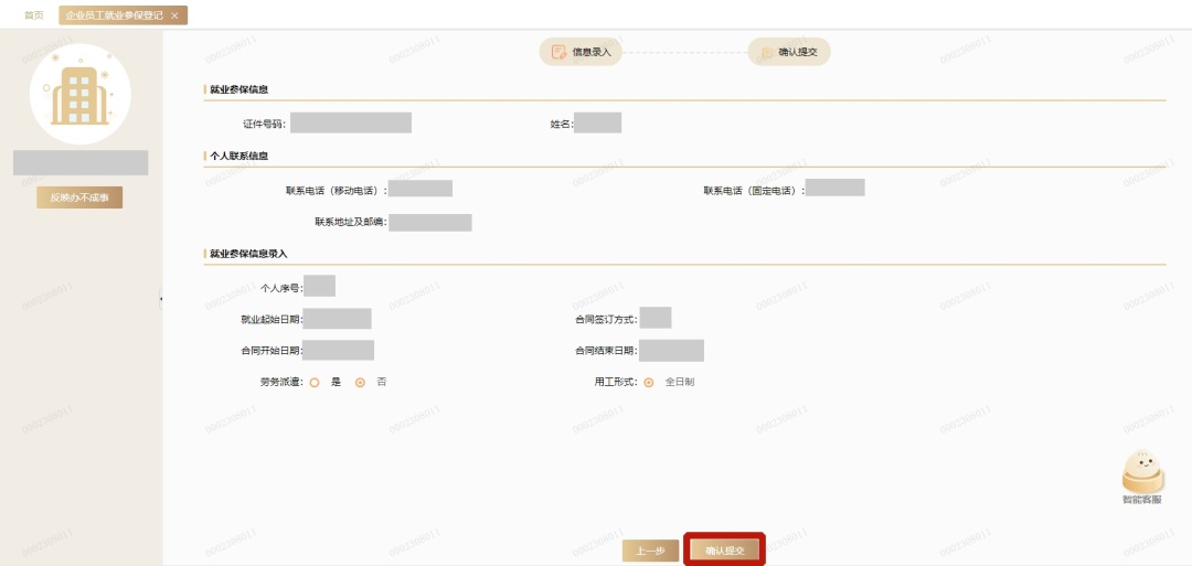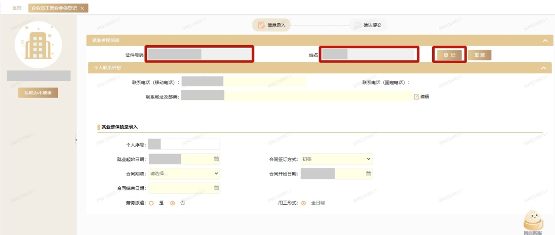 第三步:录入就业参保信息