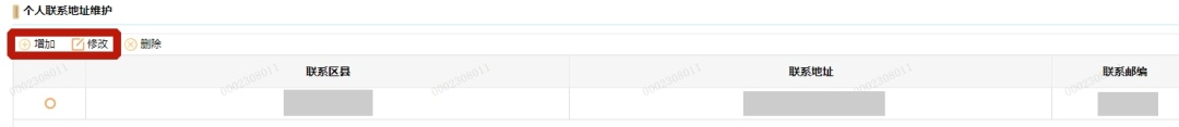 ■修改联系地址:点选默认的联系地址,点击“修改”(无默认联系地址的,可直接点击“新增”)。