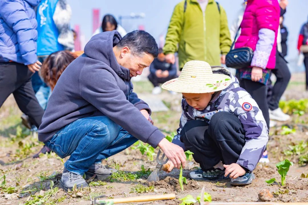 “春雷响,万物长,丰收有望看春耕。”在怀旧之余,活动还安排了丰富的农业体验活动。爷爷奶奶领路,带着孩子们乘坐小青龙观光车游览百果园。沿途风景如画,菜地、居住区过去的模样在长辈的讲述中重现。