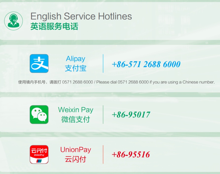 在上海,您可以使用支付宝、微信、云闪付以及您的境外电子钱包进行便捷的移动支付。您在使用过程中有任何问题请致电相应英语热线。