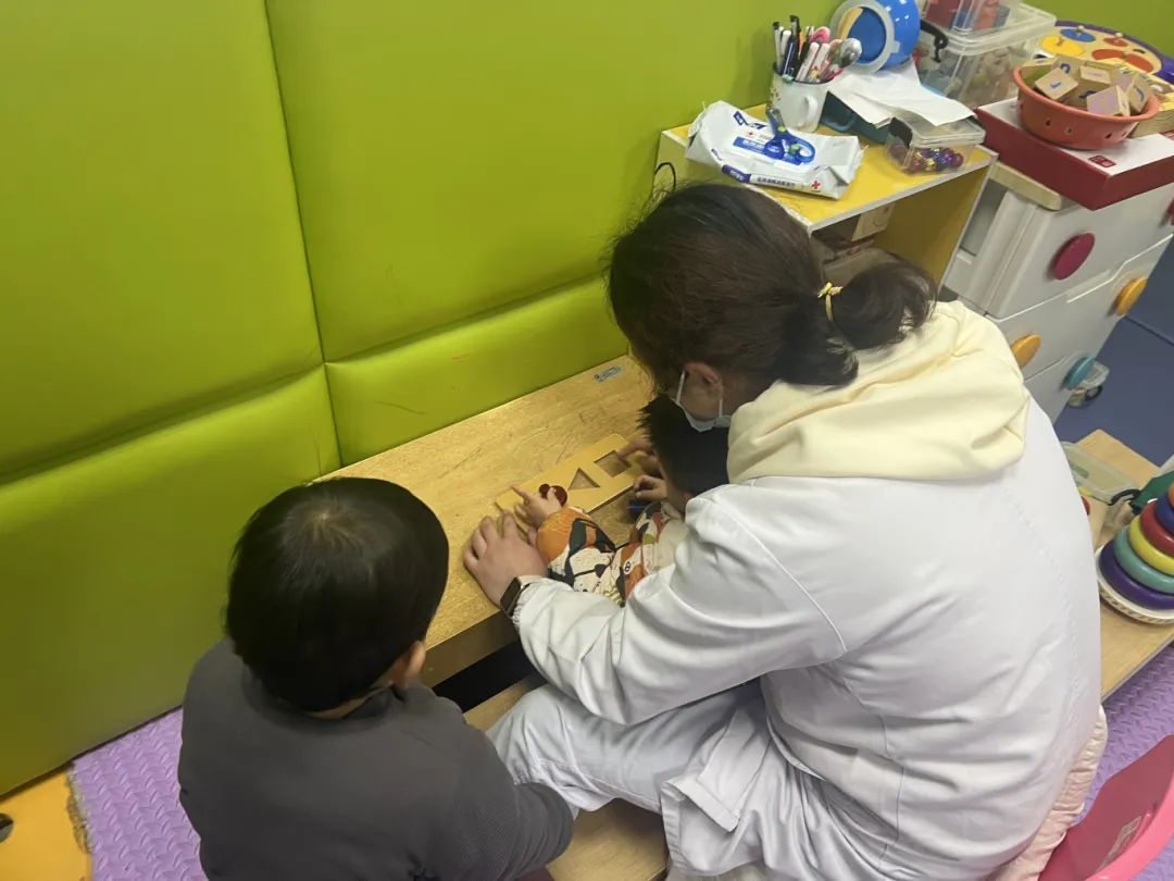 康复师刘苗苗温柔细心,脸上永远挂着甜甜的微笑,孩子们亲切地称她为“喵喵老师”。谈及最大的工作挑战,刘苗苗表示,言语训练时一个简单的动作,一句话,对着患儿重复成百上千遍也不见效果,有时会有挫败感。“每次我都会鼓励他们再试一次,也是鼓励自己。再试一次,说不定就成功了。”满满的关爱让康复科洋溢着暖暖的正能量,也给特殊患儿“荒芜混沌”的世界带去更多的欢乐和希望。