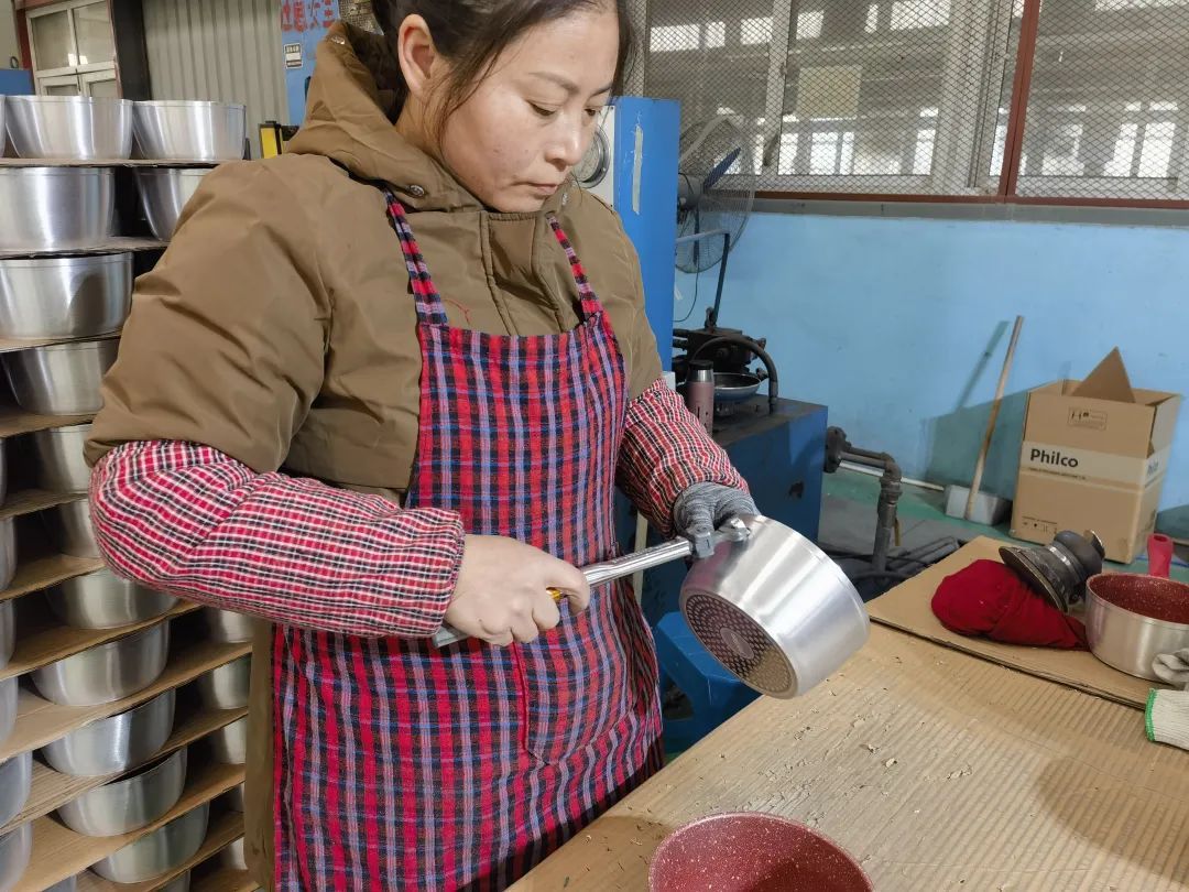 目前,乾天公司在厨具方面已拥有多项专利,产品多达500多种。作为上海地区较大的厨具生产基地之一,乾天公司帮助600多人实现了就业,促进了村民在“家门口”持续稳定增收。如今,平均每月有超过50万口崇明好锅从这里走进千家万户,炒出五湖四海的美味佳肴,炖出热气腾腾的人间烟火。