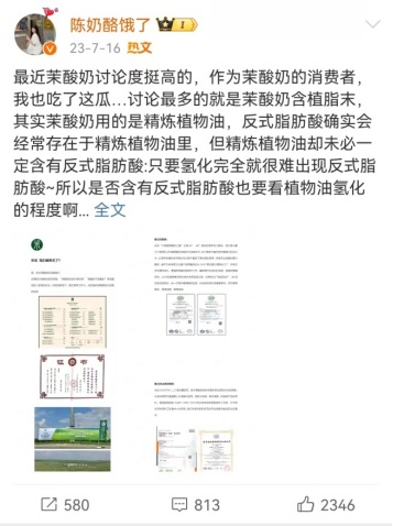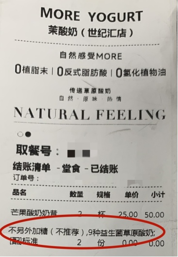 再对照检测数据中蛋白质和乳糖含量,可以发现茉酸奶的芒果酸奶奶昔用的酸奶量并不多。但脂肪含量却高得很奇怪,是蛋白质含量的3.25倍,是乳糖含量的2.77倍。这些多出来的脂肪一定不是酸奶里的,也不会是芒果里的。那就需要茉酸奶跟消费者说明一下,在芒果酸奶奶昔加了啥?除了脂肪,可能消费者还比较在意芒果酸奶奶昔“回味甘甜”是因为加了蔗糖和麦芽糖,特别要说明本次测试购买的是“不另加糖”的芒果酸奶奶昔。