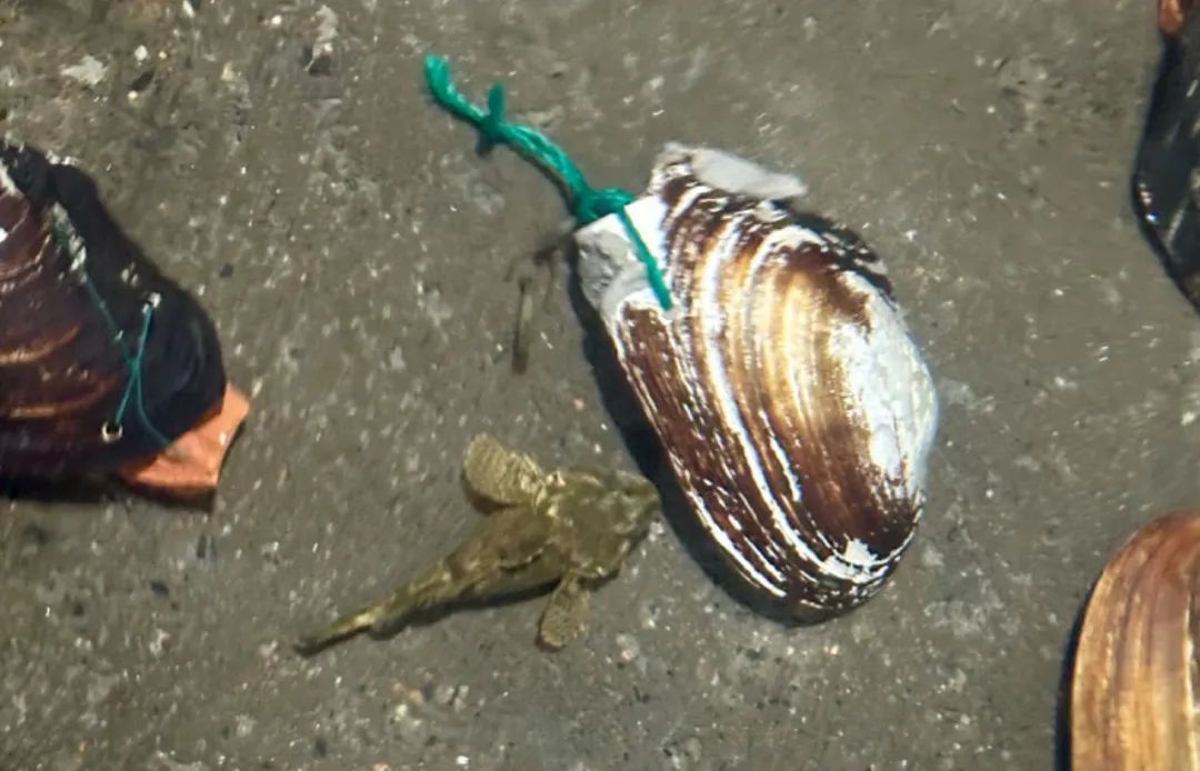 3月11日,记者来到位于小昆山镇的水产良种场,首先映入眼帘的是养殖池中一对对翻扣在池底的蚌壳,这是技术人员为产卵期的四鳃鲈布置的“小家”。凑近水面观察,偶尔能看到在蚌壳四周游动的成鱼。而另一边的孵化池中,网箱内则浸泡着不少捕捞来的粉色卵块。