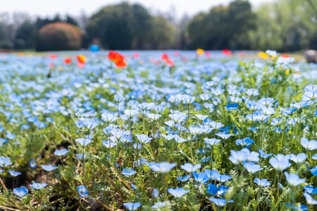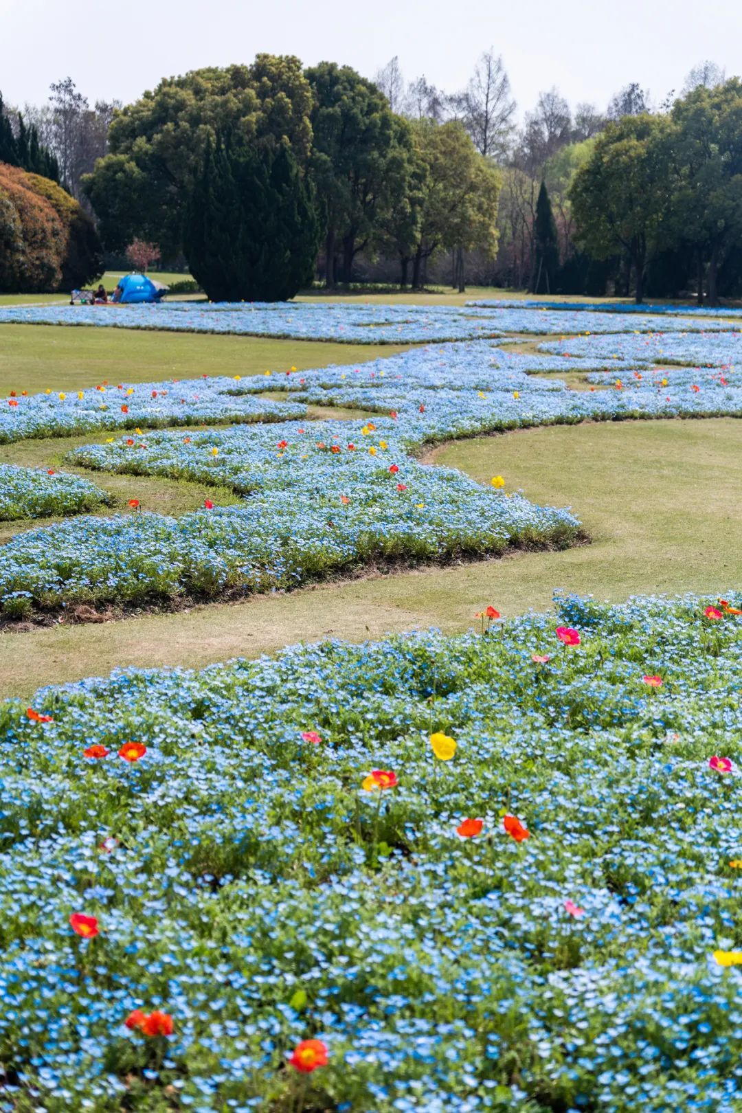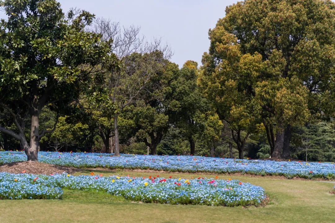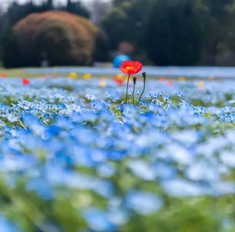 上海滨江森林公园去年探索在枫香草坪花海区域种植喜林草,大面积蓝色的小花铺满在草坪间,鲜艳的冰岛虞美人点缀其中,取得了较好的景观效果,带给市民游客良好的打卡体验。