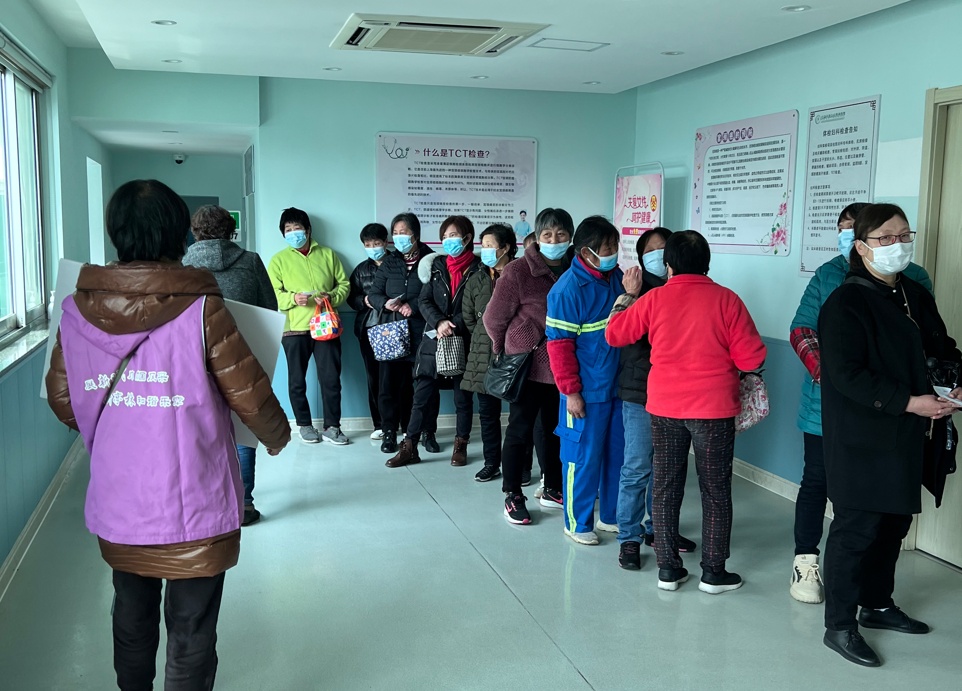 妇女“两病”筛查首日,共有116名妇女参加。正在等报告的唐阿姨说:“这个检查对我们这些退休妇女是非常好的福利。”