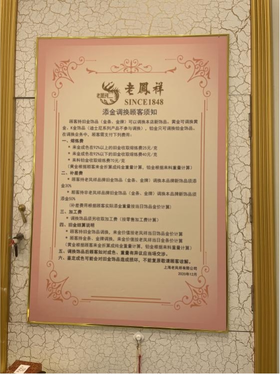 部分知名黄金品牌能够做到规则公示上墙