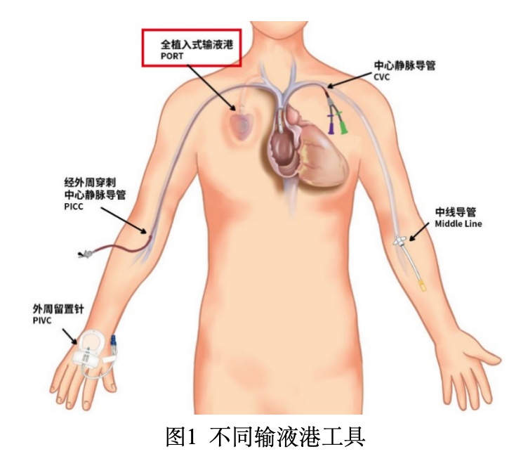 完全植入式输液港(implantable venous access port, IVAP),是一种埋入体内供长期输液的小型装置,适用范围广的静脉输液方式。它可以在多种治疗中使用,也称为看不见的“生命之港”。输液港可用于采集血标本、输血、化疗药物的输注,也可有效防止化疗药物外渗等原因造成的不良反应,为恶性肿瘤化疗和长期慢性疾病患者输液提供便捷安全的静脉输注方式,它还可以用于营养素输注和输血等。
