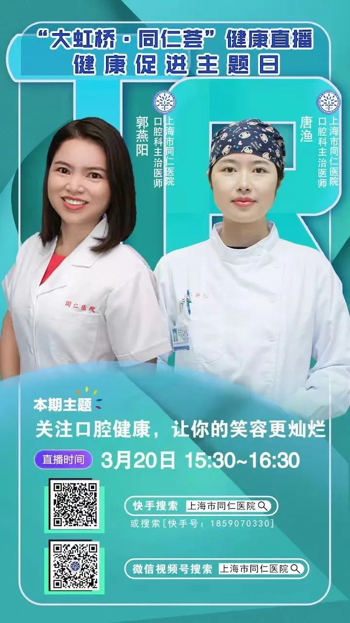 2024年3月20日,迎来第17个“世界口腔健康日”,今年世界口腔健康日的主题是:健康口腔,健康体魄。上海市同仁医院口腔科将于当日举办系列健康公益活动,包括科普讲座、义诊、健康咨询、口腔卫生保健示范、科普视频直播等,欢迎有需求的朋友参加。