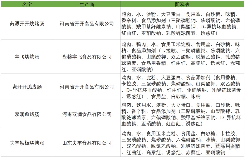 记者购买的5种市面上常见的淀粉肠产品