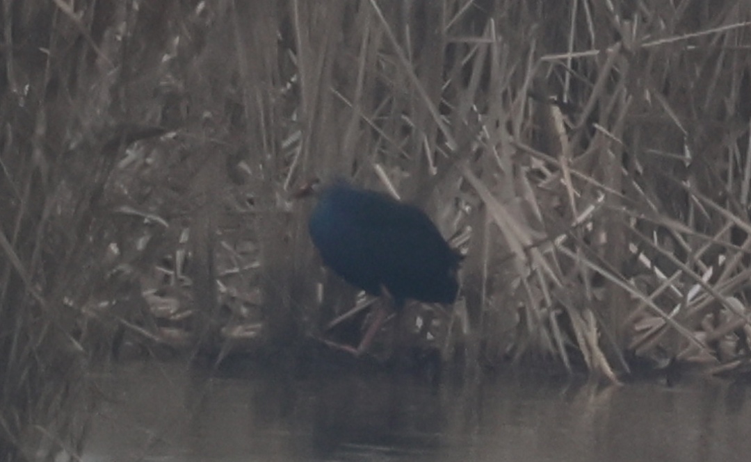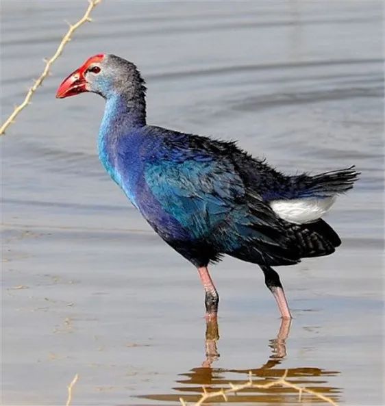 紫水鸡是鹤形目秧鸡科鸟类,一种大型而敦实的紫蓝色秧鸡。性格温顺而胆小,白天多躲藏在芦苇丛中,保护区的两笔记录也均是在芦苇丛边缘发现,活动时频繁发出“咯咯”声和“哼哼”声。