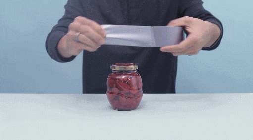 可以在罐头盖上面套几根橡皮筋、一个橡胶手套或是一层保鲜膜,增加拧罐头的摩擦力,手不容易打滑,就能也能更好的使上力气了。