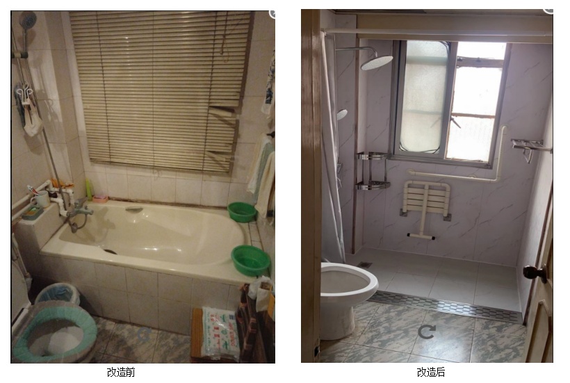 通过适老化改造,虞爷爷家的生活区域多了智能感应灯、床边加装了扶手、洗浴区安装了座椅……这些看似“不起眼”的改造,却改变了虞爷爷“洗澡难、生活难”等实际问题。看着焕然一新的“新家”,老人乐得合不拢嘴,心里暖洋洋的。