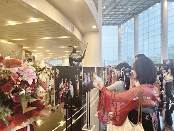 在剧中,不少十二钗“同框”的画面十分养眼。而正式开演前别样的暖场、演出结束后精心的谢幕也都美得让人心醉。李斯思介绍道,这两个环节的设置都源自观演互动。起初,观众反映说在剧中搞不清楚“十二钗”各自的身份,于是导演在演前增加暖场演出“入梦”,由演员手拿代表自己角色的花朵上台,在插花的过程中增进观众对人物的了解。谢幕环节也经过了精心设置:所有演员返场,满怀热爱地冲向舞台,冲到观众面前,在最近的距离和观众产生“化学反应”,带来令人震撼的艺术效果和深深共情。“暖场、谢幕、演员组合‘比心’,专门设计物料素材……这些多样化的场景都是根据观众需求设计的,并及时呈现到接下来的演出中。”李斯思说。