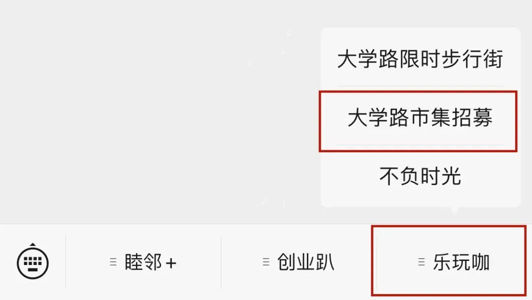 关注【魅力五角场】,点击公众号菜单栏中【乐玩咖】【大学路市集招募】