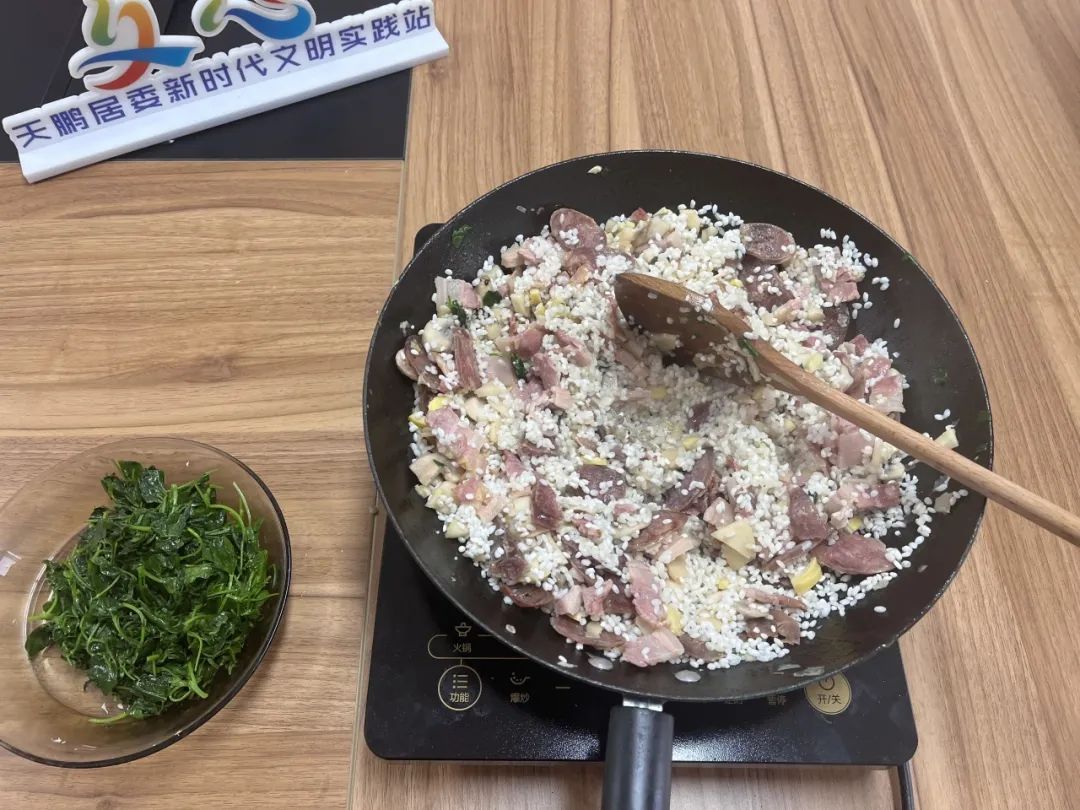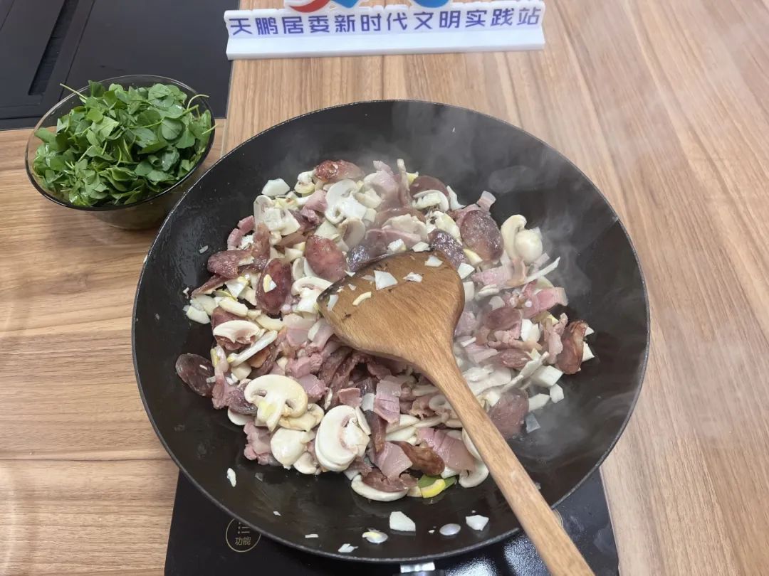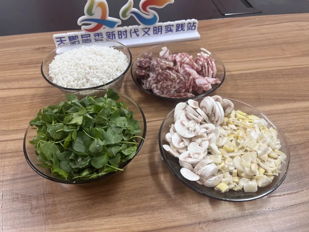 说起草头 应该是奉贤本地较常见的春菜了 酒香草头或许是 近期大家饭桌上的“常客” 除了这种家常做法外 小编再教大家一种草头新吃法 四鲜草头饭 让你一口吃遍春天的味道 食材准备 大米、草头、咸肉、香肠、春笋、蘑菇。 将大米淘洗干净,控干水分;咸肉、香肠、春笋、蘑菇分别切成薄片;草头切段。 锅中倒入少许食用油,先煸炒咸肉片,待炒出油脂和香味后加入香肠继续煸炒。最后将春笋和蘑菇一起煸炒几分钟后出锅备用。 煸炒后的底油不要浪费,继续倒入草头,大火煸炒至熟后盛出备用。 将煸炒好的咸肉、香肠、春笋和蘑菇倒入锅中,加入控干水分的大米,炒出香味。 最后将炒好的食材(除了草头之外)一起倒入电饭锅中,加入适量清水,启动煮饭模式。 煮好后,倒入煸炒好的草头,翻拌均匀(根据个人口味加入适量盐等调味料)后,四鲜草头饭就可以出锅了。 鲜香入味,有肉有菜还有饭,吃上一碗来自春天的味道,幸福感爆棚……一起试试吧!