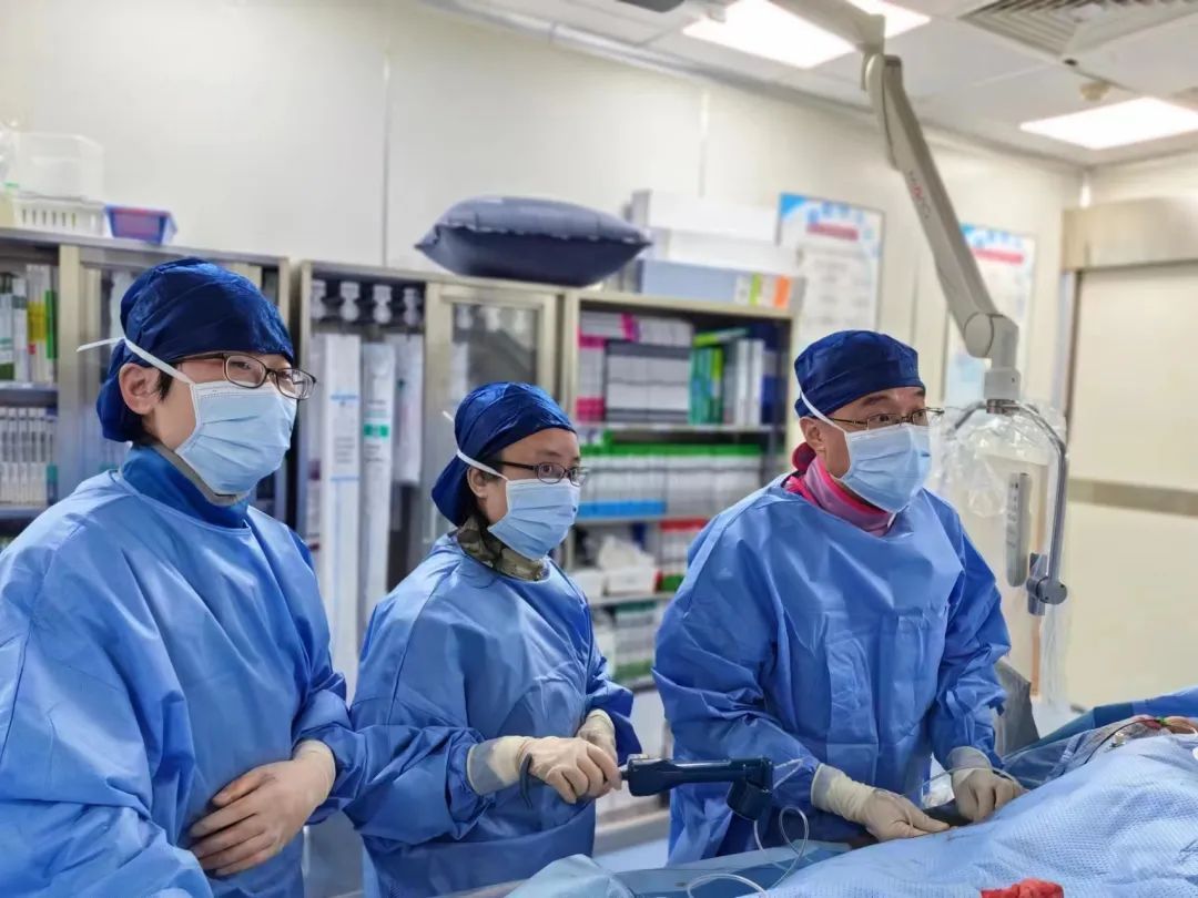 4分钟后,导管室已经做好术前一切准备工作。此时,胸痛中心主任曹华明带领的介入团队刚刚结束一例急性心梗患者的手术,接到通知后,立马全体待命。