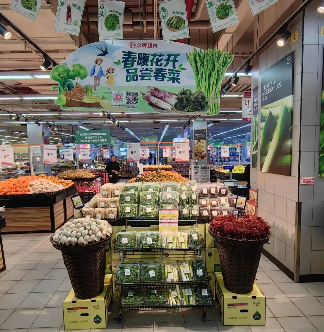 根据永辉超市相关负责人介绍,春菜价格下降,一方面,是受市场环境和气候变化的影响,部分春菜品种产量增加,市场供大于求;另一方面,基于永辉超市源头直采的模式,去除中间环节,降低了春菜采购成本,提供给消费者更实惠的价格。据了解,永辉超市在福建南平、上海崇明、云南大理、四川达州等全国较大的核心春菜种植区设有大型春菜直采基地。比如位于福建建瓯的笋类直采基地,种植面积超20万亩,年产量可达7万吨,依托于永辉成熟的物流,采收后的春菜可以辐射福建、浙江、上海、安徽、重庆、河南、广东等近10个省区。