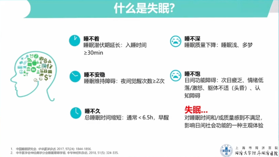 同济医院精神医学科吴珩教授为大家分享了《失眠症的常见治疗方法》,提出了优质睡眠应当包含的要素,介绍了多种改善失眠的药物及非药物治疗方法: