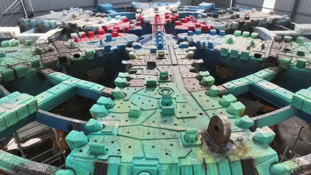 “领航号”盾构机刀盘直径15.4米,总重量440吨。刀盘完成焊接后,将对刀盘进行焊缝超声波探伤、平整度、真圆度及刀盘涂装等全方位“体检”,确保刀盘与主机顺利合体。