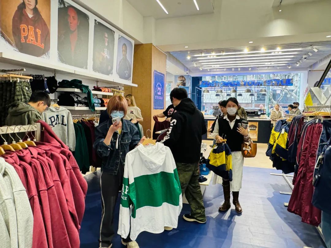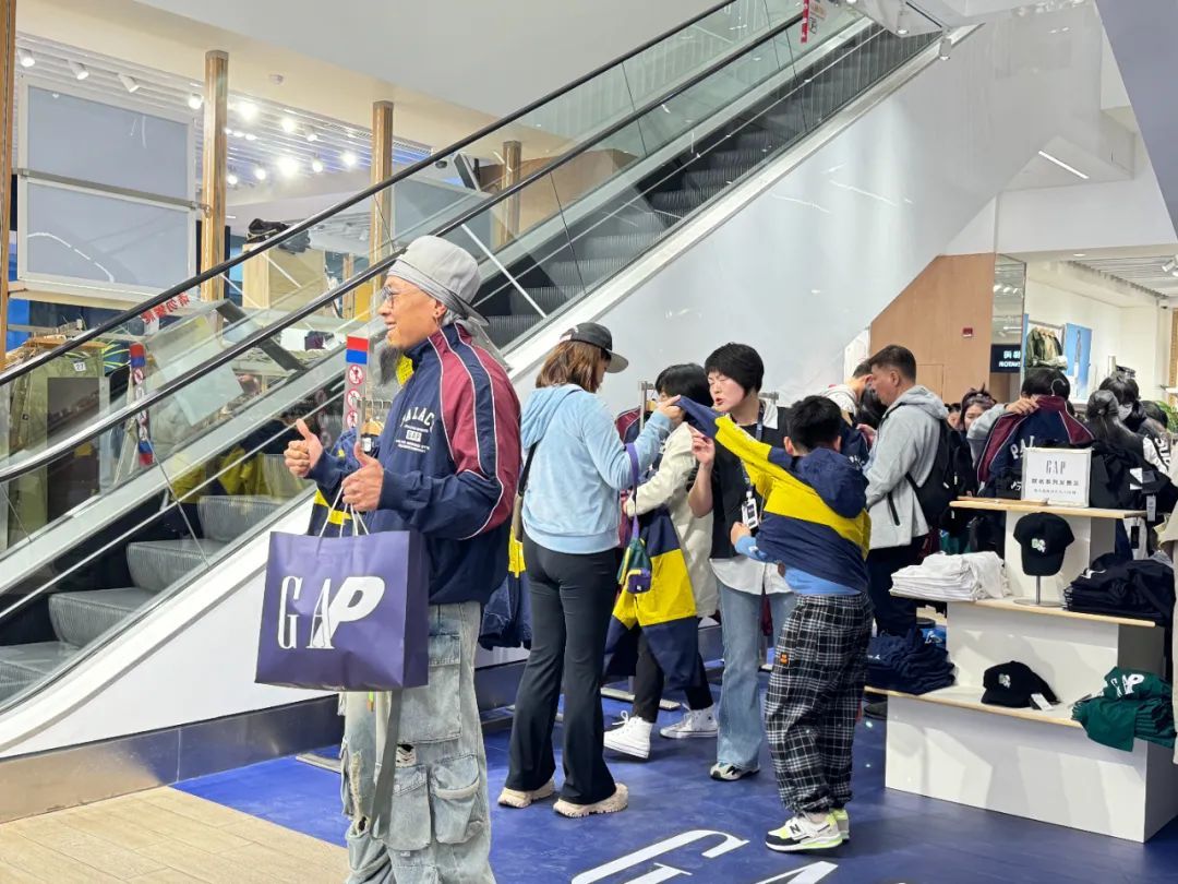 排在队伍前列的陶先生告诉记者,今早8点过来排队, 平时比较喜欢街头文化和潮牌,听说这次两个品牌出了联名就特地过来。还有一位消费者表示,作为滑板爱好者一直关注Palace这个品牌,但是国内目前购买渠道不多,“这次和Gap联名了就过来看一下,可以实地感受了解两个品牌。”