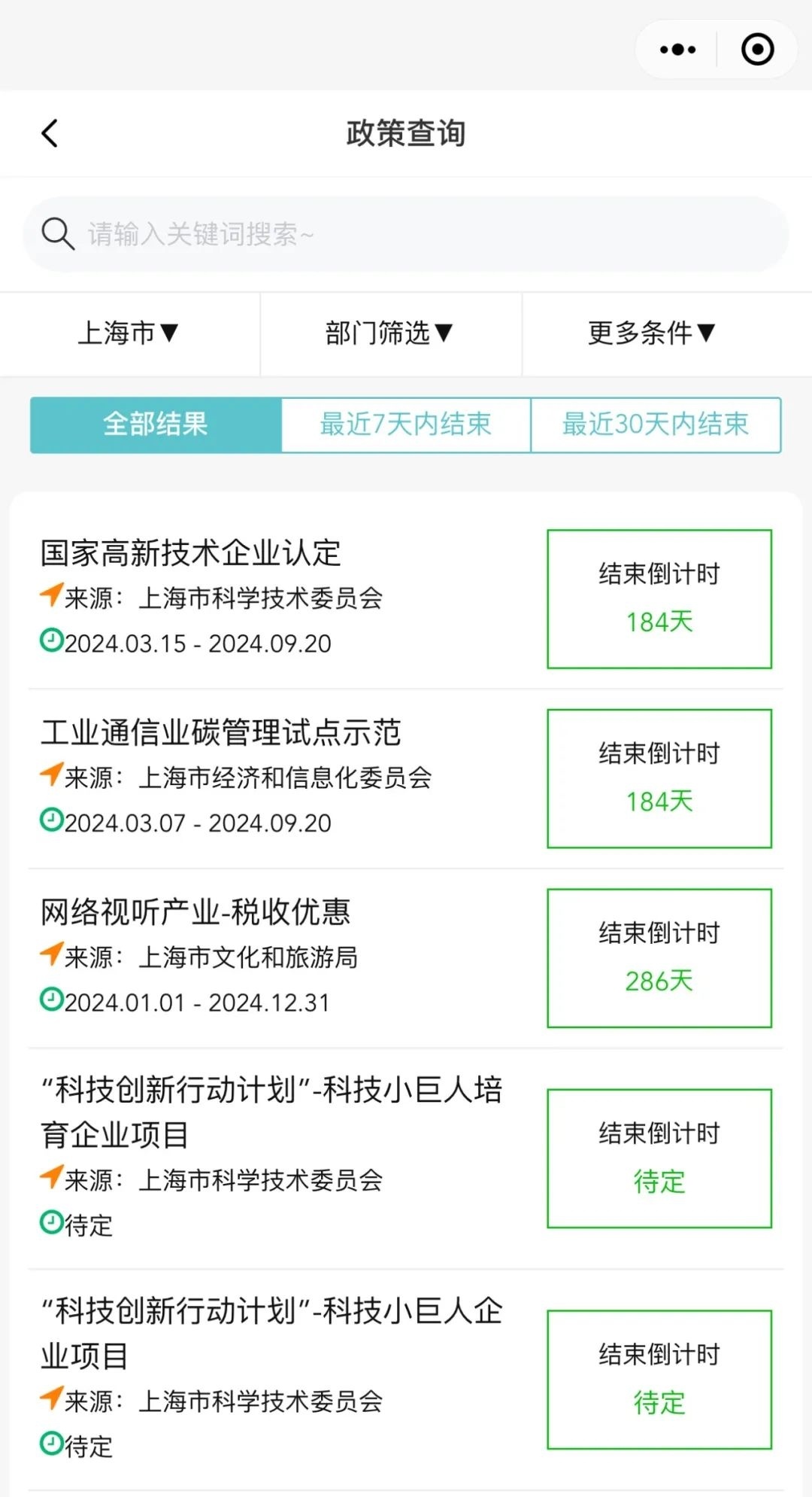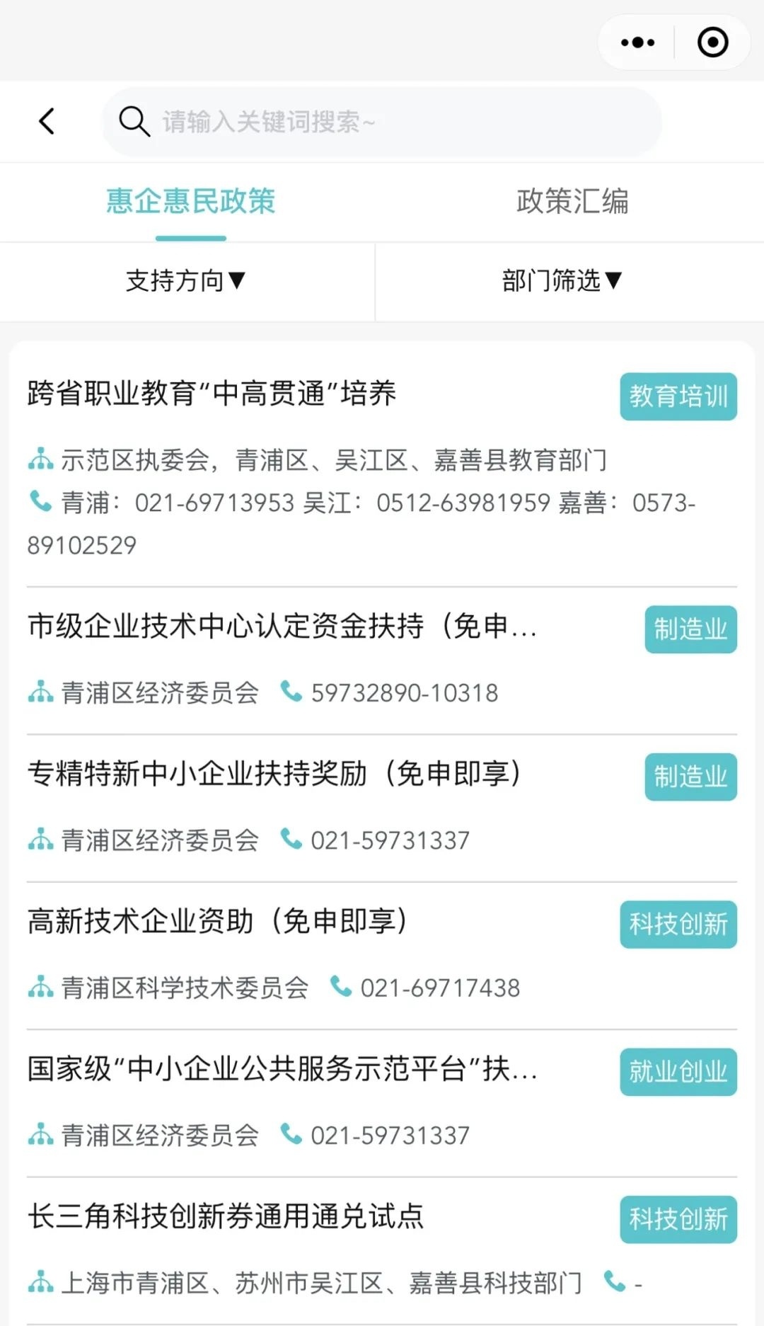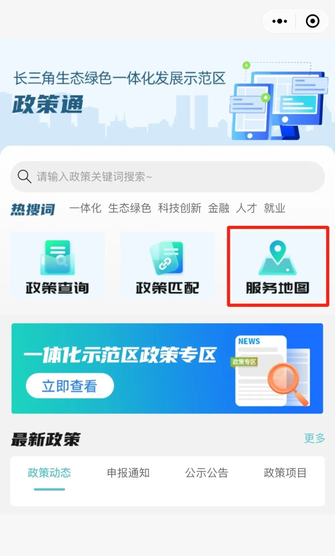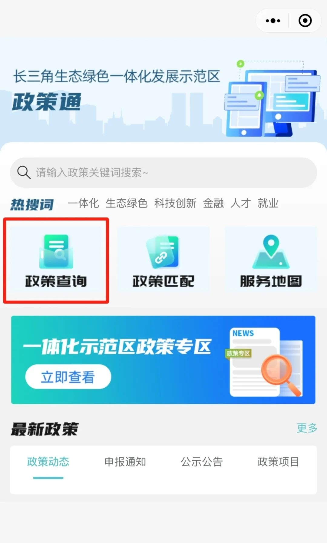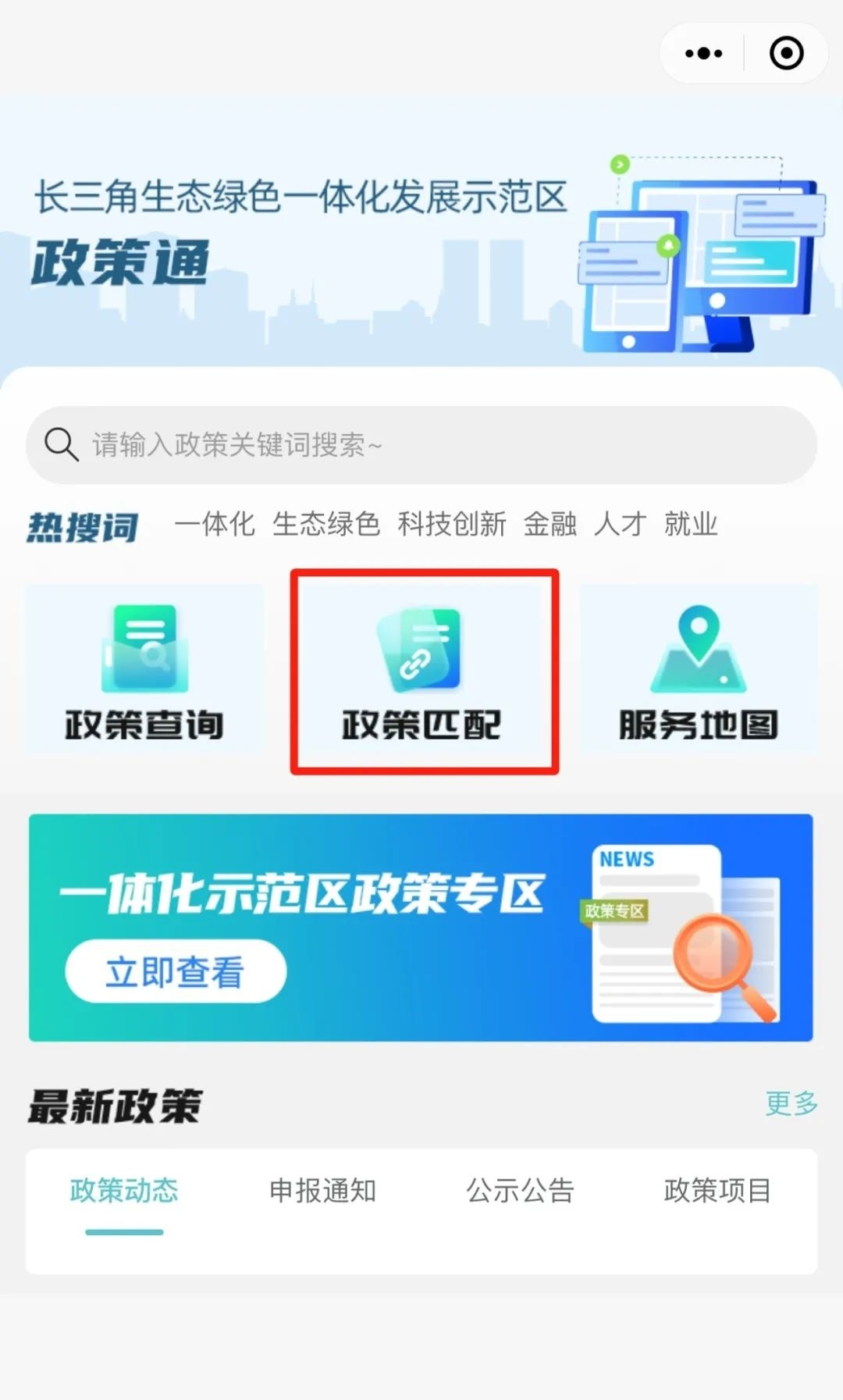 长三角一体化示范区执委会介绍,为方便长三角企业、居民以及各类用户进行政策信息查询,长三角一体化示范区近期上线了“政策通”小程序。“政策通”小程序整合了中央及江浙沪三地发布的涉长三角一体化高质量发展的重要政策信息资源,集政策查询、政策匹配、服务地图等功能为一体,用户可以根据需要输入关键字,一键查询各类政策信息。“政策通”具体有哪些功能呢?一起来看看吧↓ “政策通”小程序依托大数据、新媒体技术及云计算能力,旨在构建便捷高效的政策信息查询平台,为长三角一体化示范区内的企业、居民以及各类用户提供一站式政策信息服务。 长三角一体化示范区“政策通”小程序具有显著的跨区域特色,整合了中央及沪苏浙三地发布的所有涉长三角一体化高质量发展的重要政策信息资源。目前“政策通”已重点汇集各类政策信息,包括政策项目4400余个、政策文本1.2万余个、申报通知1.5万余个、公示公告2.1万余个。无论是产业发展、生态绿色、科技创新,还是人才引进、跨域就业等等,都能快速搜寻匹配到相关政策内容。 “政策通”小程序主要提供包括政策查询、政策匹配、服务地图、一体化示范区政策专区在内的多项便民服务。 如何查询?关键词标签精准查政策 用户可以点击“政策通”小程序首页的政策查询栏目,在栏目内的搜索框内输入关键词查询,一键了解政府各层级的相关扶持政策;还可点击搜索框下方的筛选键,通过筛选地区、部门、项目与产业类别等细分类目,更有针对性地定制化查询,提高查询效率。同时“结束倒计时”提醒,将政策按“最近7天内结束”“最近30天内结束”归集供检索,方便企业和群众规范填报、及时申报。 ⬇️ 如何匹配?输入企业名极速匹配政策 用户可以点击小程序首页的政策匹配栏目,在栏目内的搜索框内输入企业名称(或关键字),就能迅速获得智能匹配结果,通过匹配符合企业申请政策项目自动化呈现匹配报告,真正实现“对号入座”,让企业一目了然获悉适合自己的政策项目方案,包括企业可申报政策、支持力度、政策匹配度及申报路径等在内的政策匹配信息,实现惠企政策一键自匹配。 ⬇️ 如何查找?位置共享政务大厅就在身边 用户可以点击小程序首页的服务地图栏目,通过点选政务服务、科普乐园、医疗卫生、旅游文化、廉洁文化五大服务模块,获取政务大厅的详细信息。用户还可以选择“我的位置”,查看自己附近是否有相关的政务服务大厅等,避免在示范区办事因不熟悉而造成走多趟、绕远路的问题。 ⬇️ 惠企专区!政策专区更便民 用户可以进入小程序首页的一体化示范区政策专区,输入关键词后选择“惠企惠民政策”或“政策汇编”板块,一键查询示范区的专属惠企惠民政策及其他一体化发展政策,为示范区内的企业和个人提供更优质高效的“全景式”便企便民服务。 ⬇️ “政策通”小程序的上线,标志着示范区在加强政策信息公开、提高公众参与度、推动政策落地等方面又迈出重要一步。下一步,“政策通”小程序将持续优化服务体验,深化拓展功能应用,以科技赋能政务服务创新,为企业和群众提供更加智能化、便捷化、精准化的政策信息服务,为推进示范区内要素高效便捷流动和市场深度融合提供有力政策支撑,助力长三角区域一体化高质量发展。 资料:上海发布 编辑 | 沈彦菲 责编 | 潘婷 沈彦菲