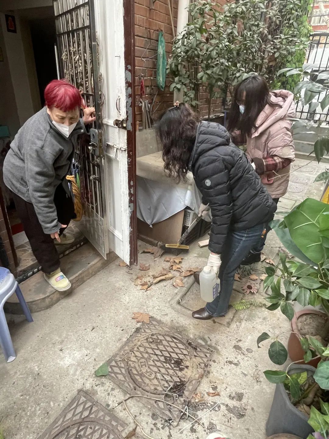 而花园公寓的清洁行动是从小花园开始的。志愿者们首先清理了花园内废弃的花盆、杂物。志愿者热火朝天的清理,也引得周边的居民加入到清洁行动中。家住淡水邨的姚阿姨也主动清理起自家门前的垃圾,把一些废旧堆物和原本放在门外的一些工具收回了自己家中。“春天了,瓶瓶罐罐丢掉一点,不能留下蚊虫、蟑螂滋生的环境。”姚阿姨说。