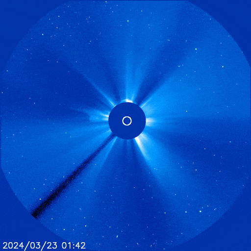 △SOHO卫星携带的日冕仪拍摄到日冕物质抛射过程