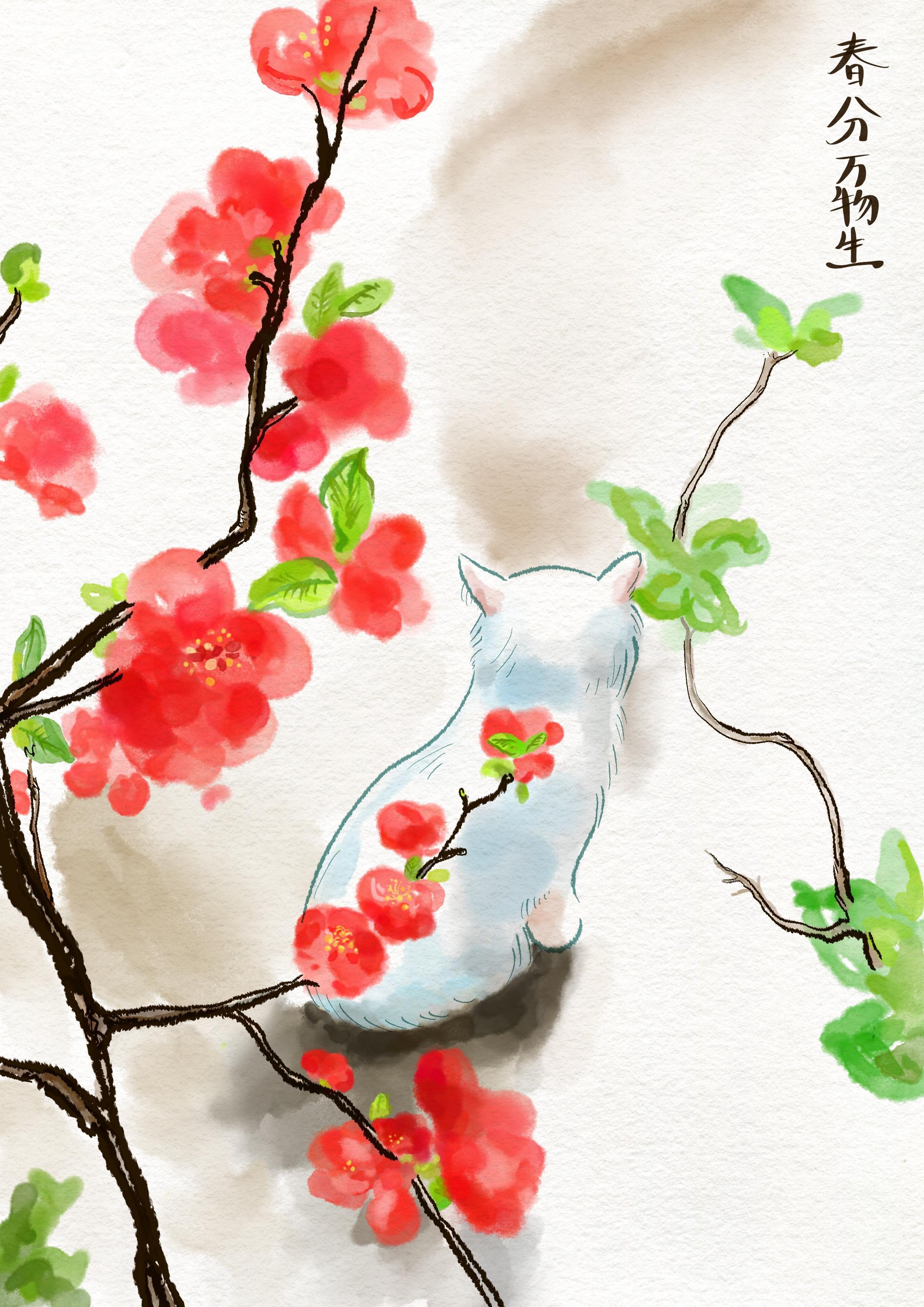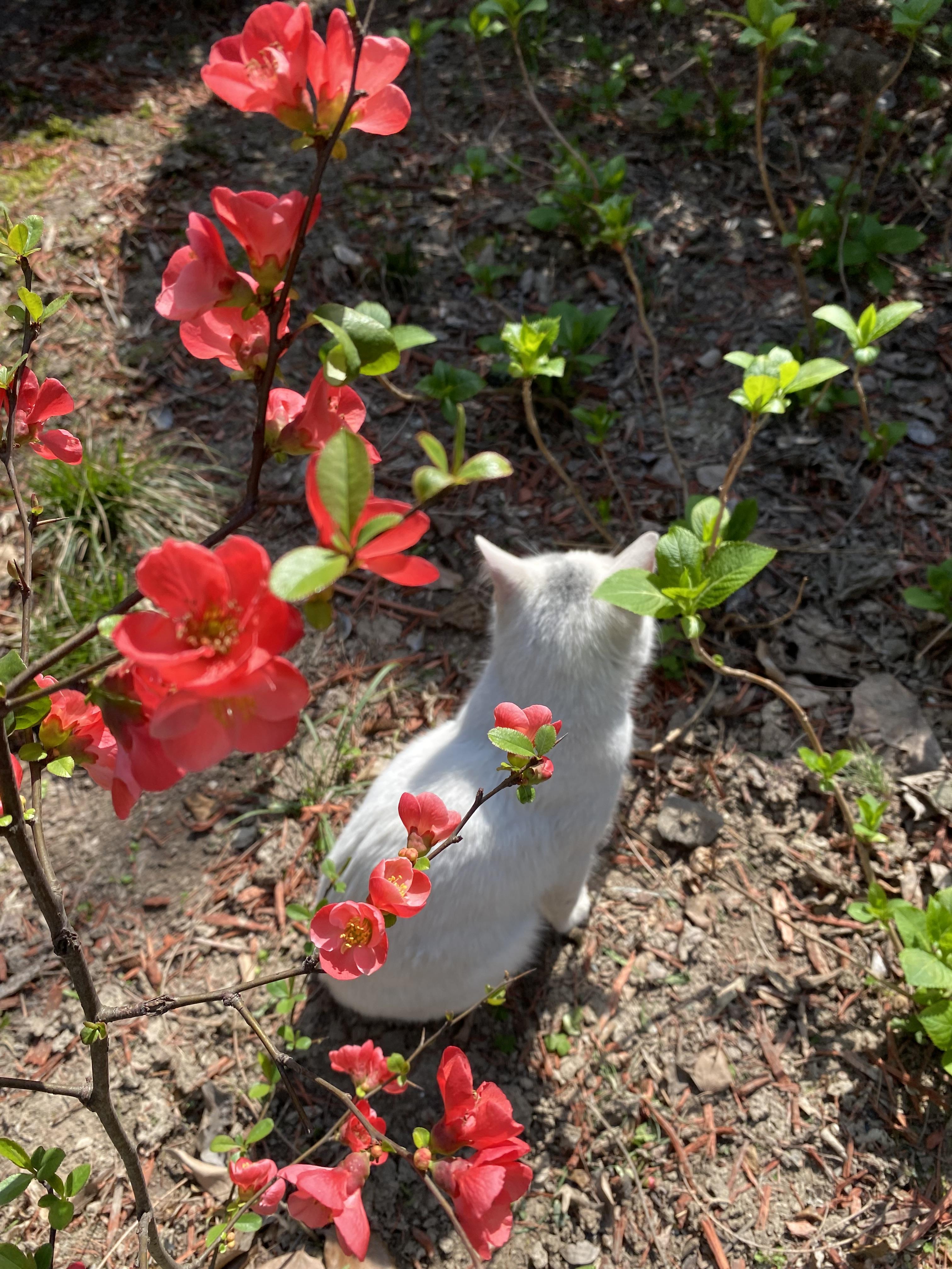 天气转暖了,白猫懒洋洋地趴在花树下晒太阳,主打一个舒适惬意。