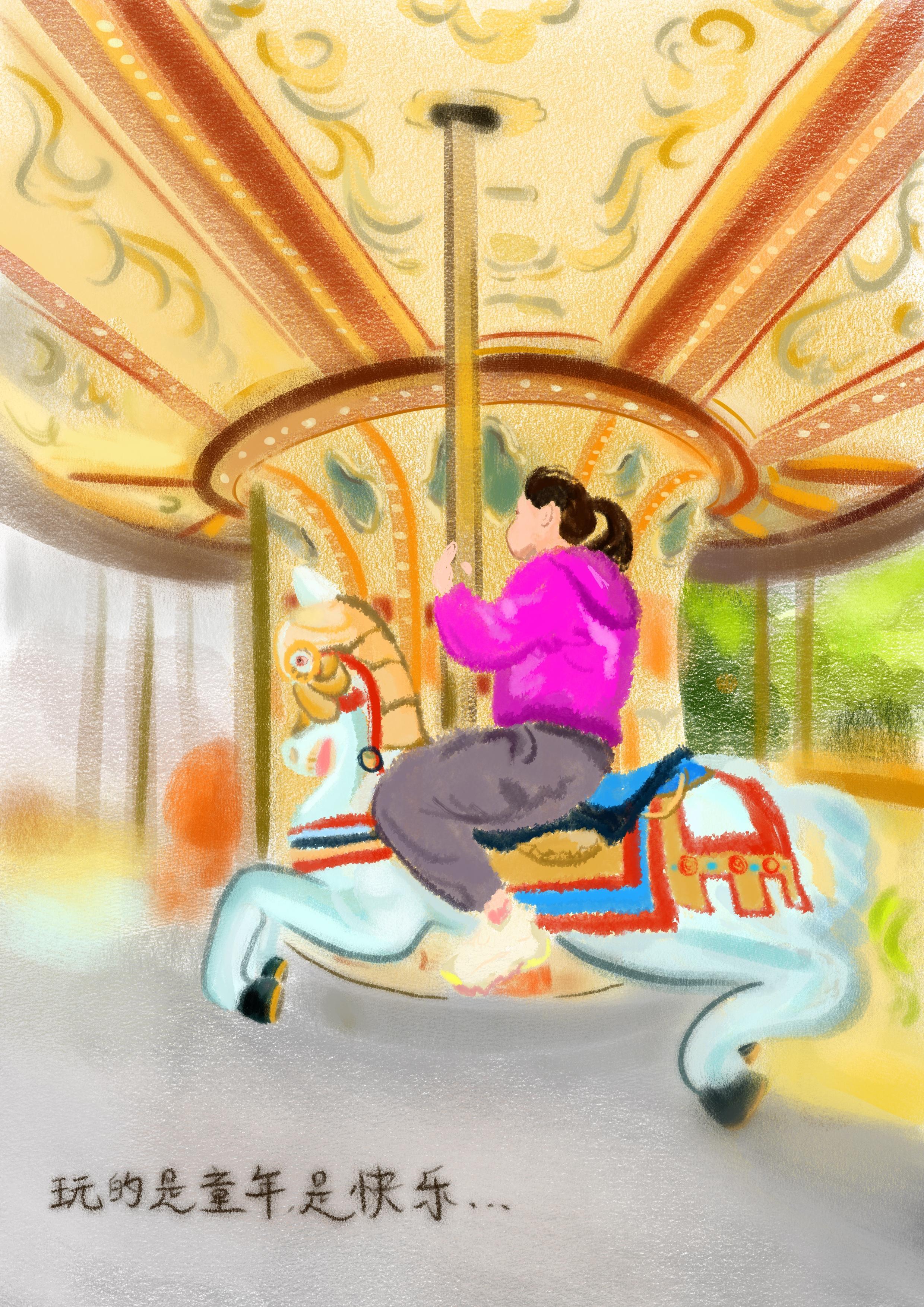 无论什么年龄段的人,只要坐上旋转木马,就如同“魂穿”童年,重拾孩提时代的乐趣,无拘无束。