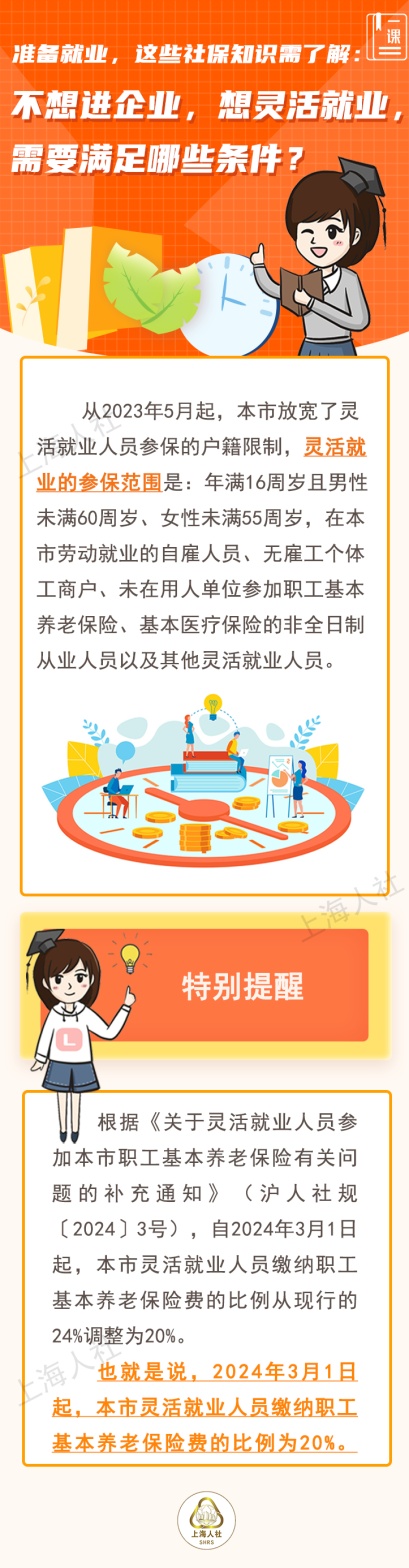 准备就业,社保是必不可少的知识。进企业工作,社保谁来缴?进企业工作,社保何时缴?到新公司后,社保缴费基数如何确定?不想进企业,想灵活就业,需要满足哪些条件?外省缴的社保还没转到上海来,会影响在上海缴费吗?这些关于就业的社保必备知识,来看市人社局的解答↓