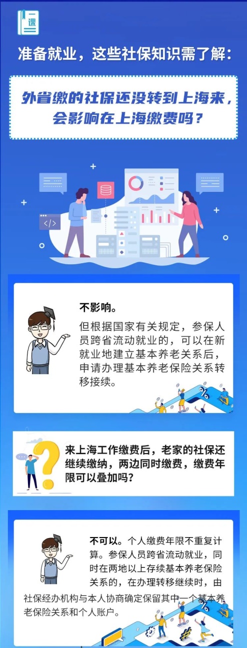 小齐是学服装设计的,前年大学毕业后在老家杭州工作了一年多。今年过完年,小齐跟着同学来上海发展,最近找到一份专业对口的工作。小齐之前在杭州缴过社保但还没转过来,他想知道会不会影响在上海的缴费?关于这个疑惑,来看解答↓