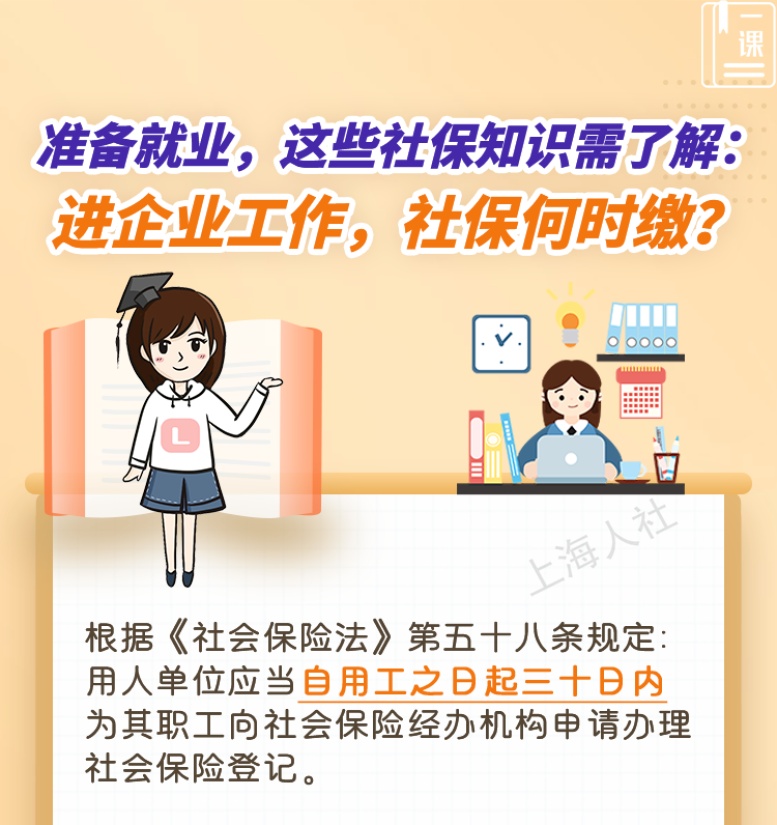 小夏上周入职了一家互联网公司,公司HR表示将从下个月开始为他办理社保。小夏觉得公司帮他办社保的时间有点晚。进了企业工作,社保应该何时缴纳?有具体规定吗?来看解答↓