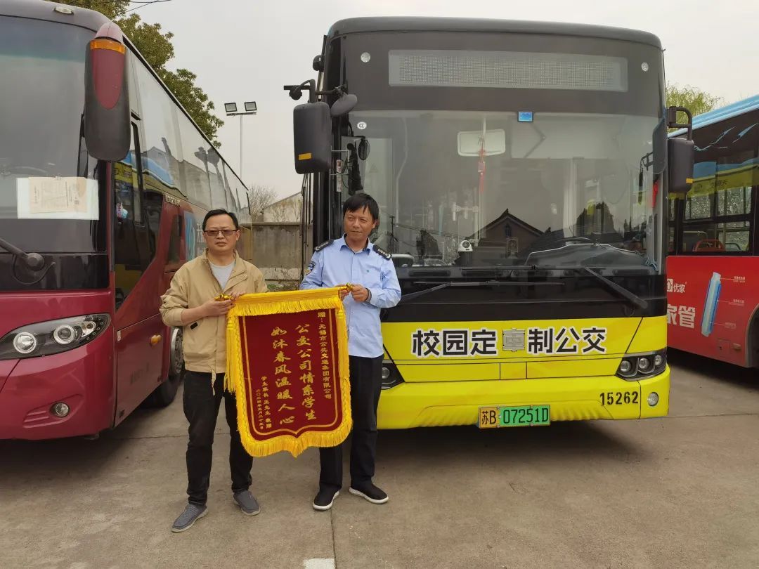 校园定制“家族”不断增加的新线,收获了家长、师生的一众好评,一面写有“公交公司情系学生,如沐春风温暖人心”的锦旗,也于上周日送至公交新区分公司硕放调度站中。