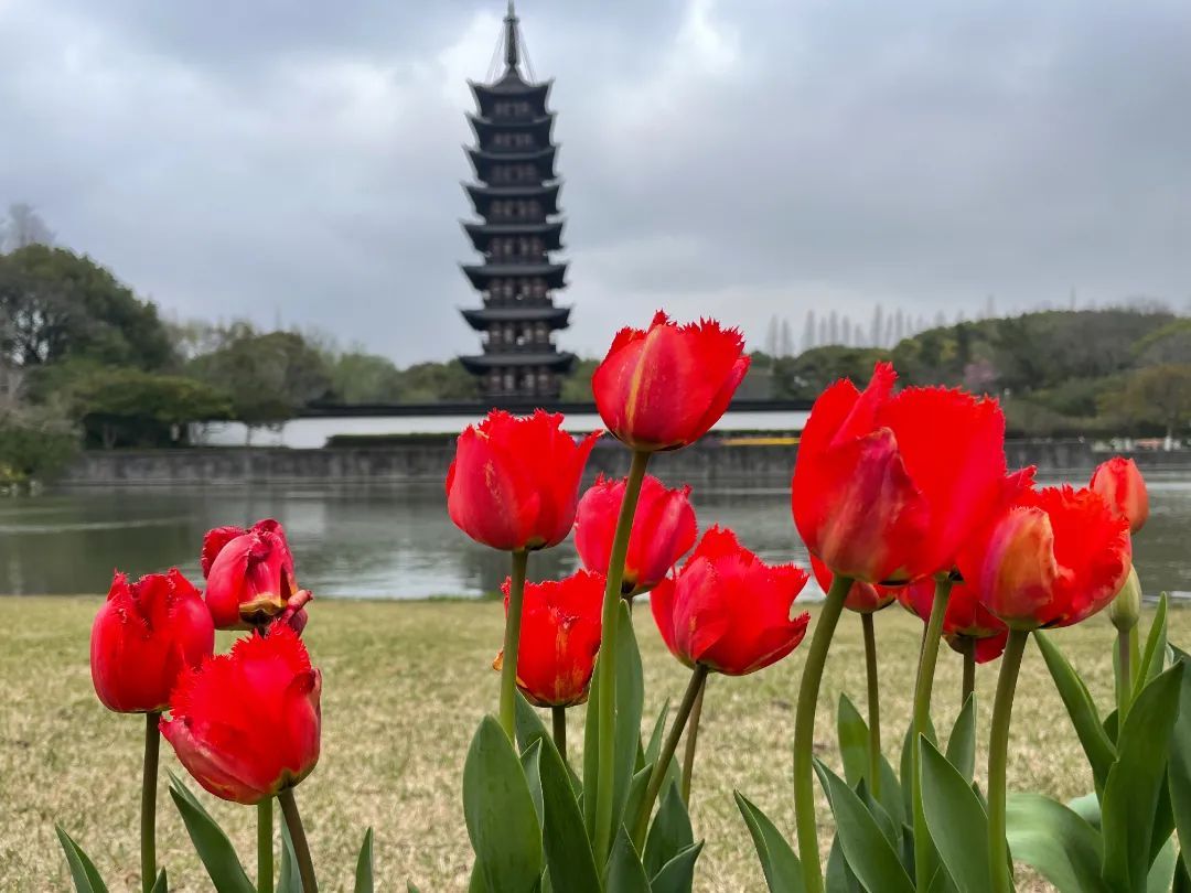 整个花展为游客提供了一种沉浸式的体验,游客从北大门“方塔风铃”源石进入,沿着北大门漫步,穿过这片色彩斑斓的花境,直至抵达方塔广场,比较有特点的是,首次采用50个花箱摆放水培郁金香花进行展出。在那里,国家级文物方塔静静地矗立着,与四周的郁金香形成了一幅和谐的画面。在大草坪区域,可以与郁金香花一起合照,让游客仿佛置身于一个花的世界,感受到了大自然的魅力,留下了美好的瞬间。