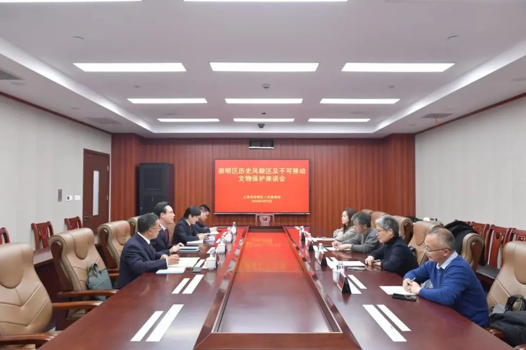 现场调查后,崇明区检察院召开了历史风貌区及不可移动文物保护座谈会,介绍了近年来崇明区检察院文物和文化遗产保护公益诉讼相关办案情况。