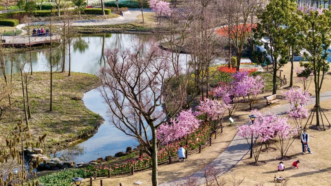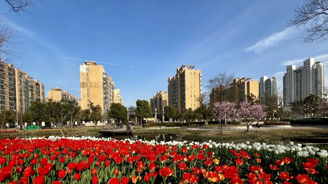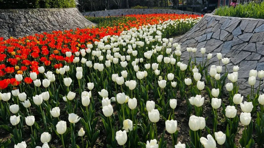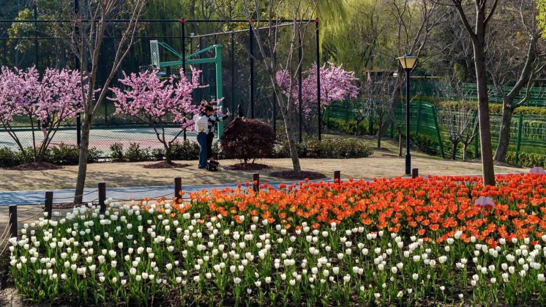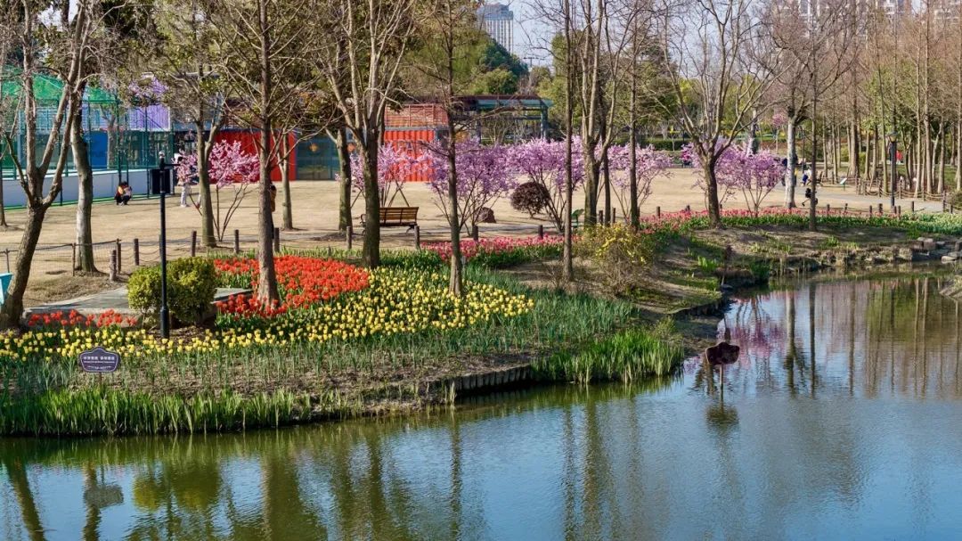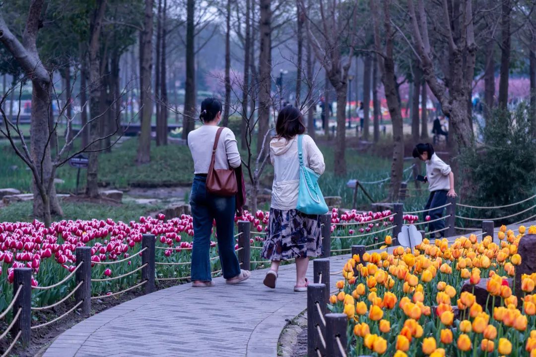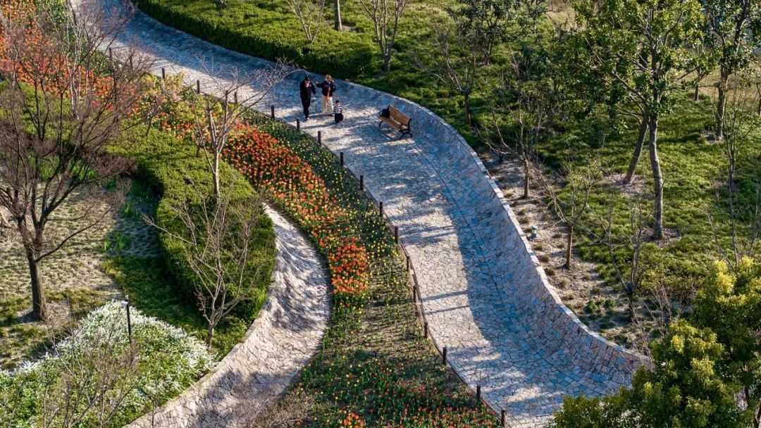 绿道边以及公园内则种植了大片郁金香