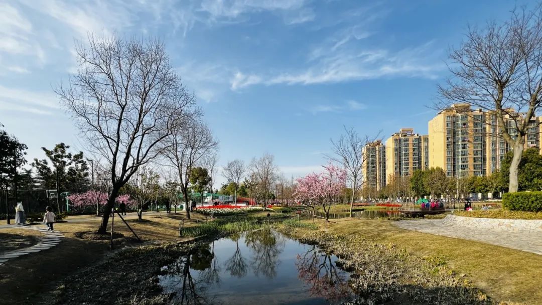 公园入口处种植了浪漫樱花