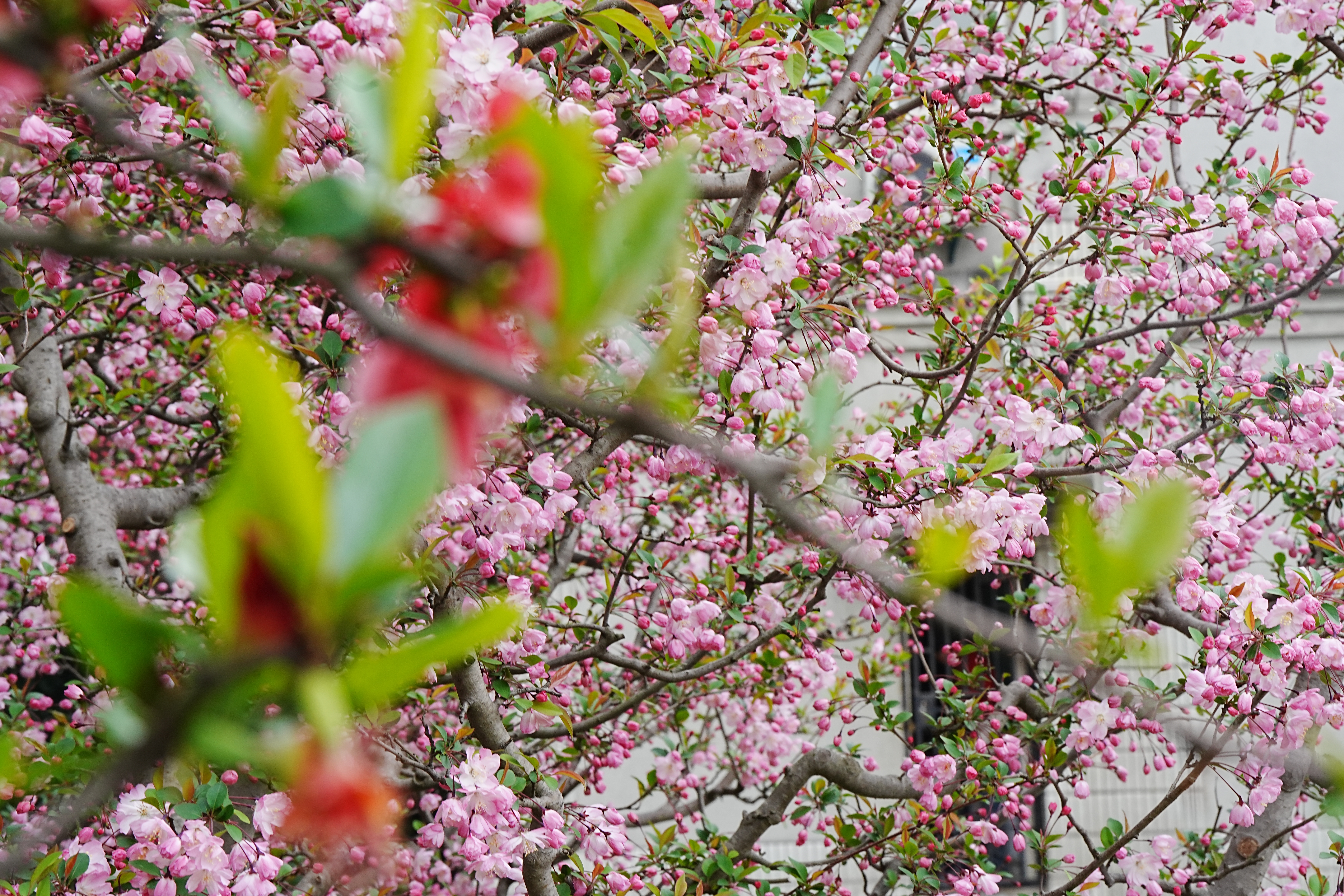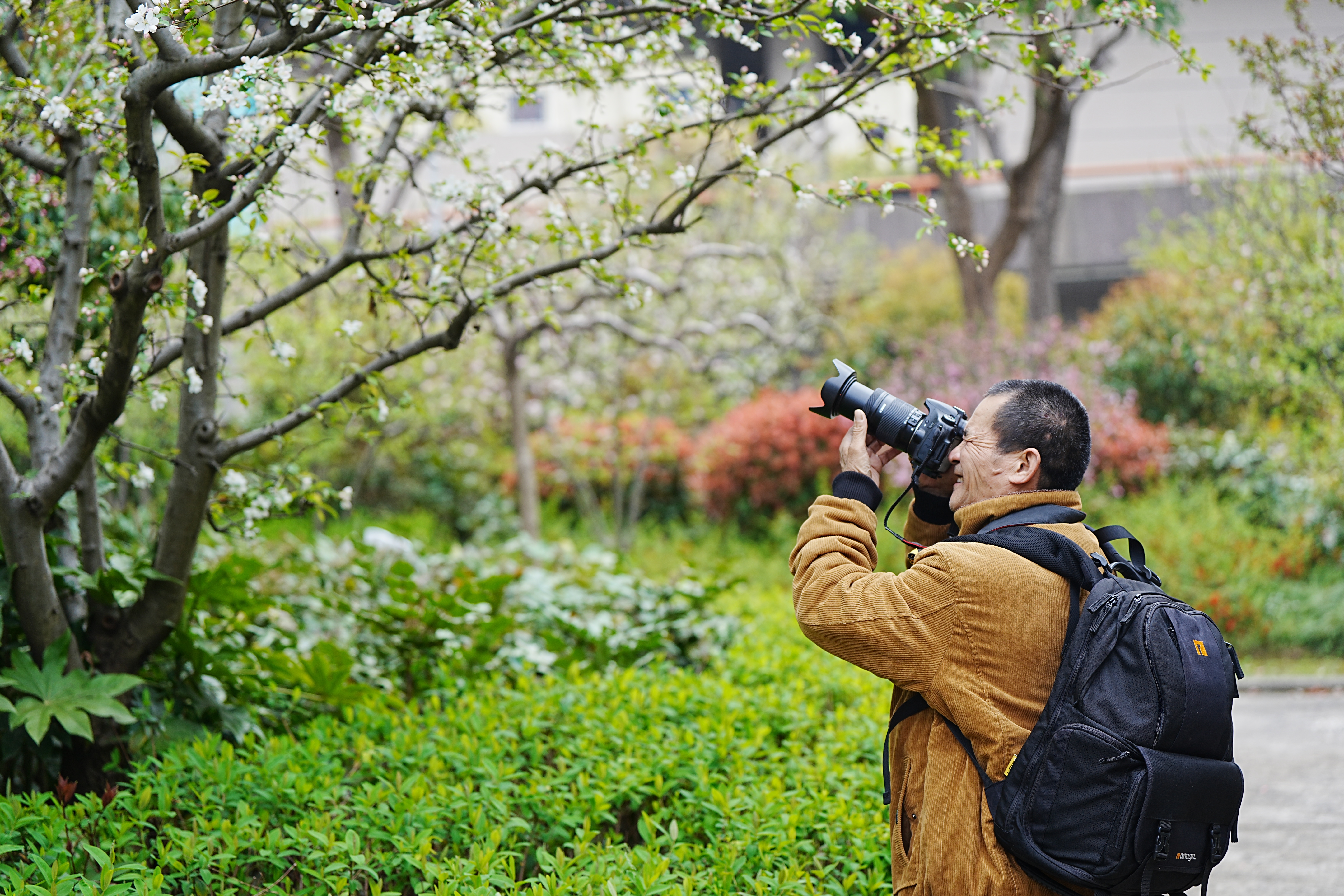 一位举着“长枪短炮”拍摄地市民对记者说,每年这时候他是必定要来欣赏海棠花,“这一时段海棠都开出来了,可能是受到天气影响,我感觉去年此时开得更加密集,花蕊更加饱满。”