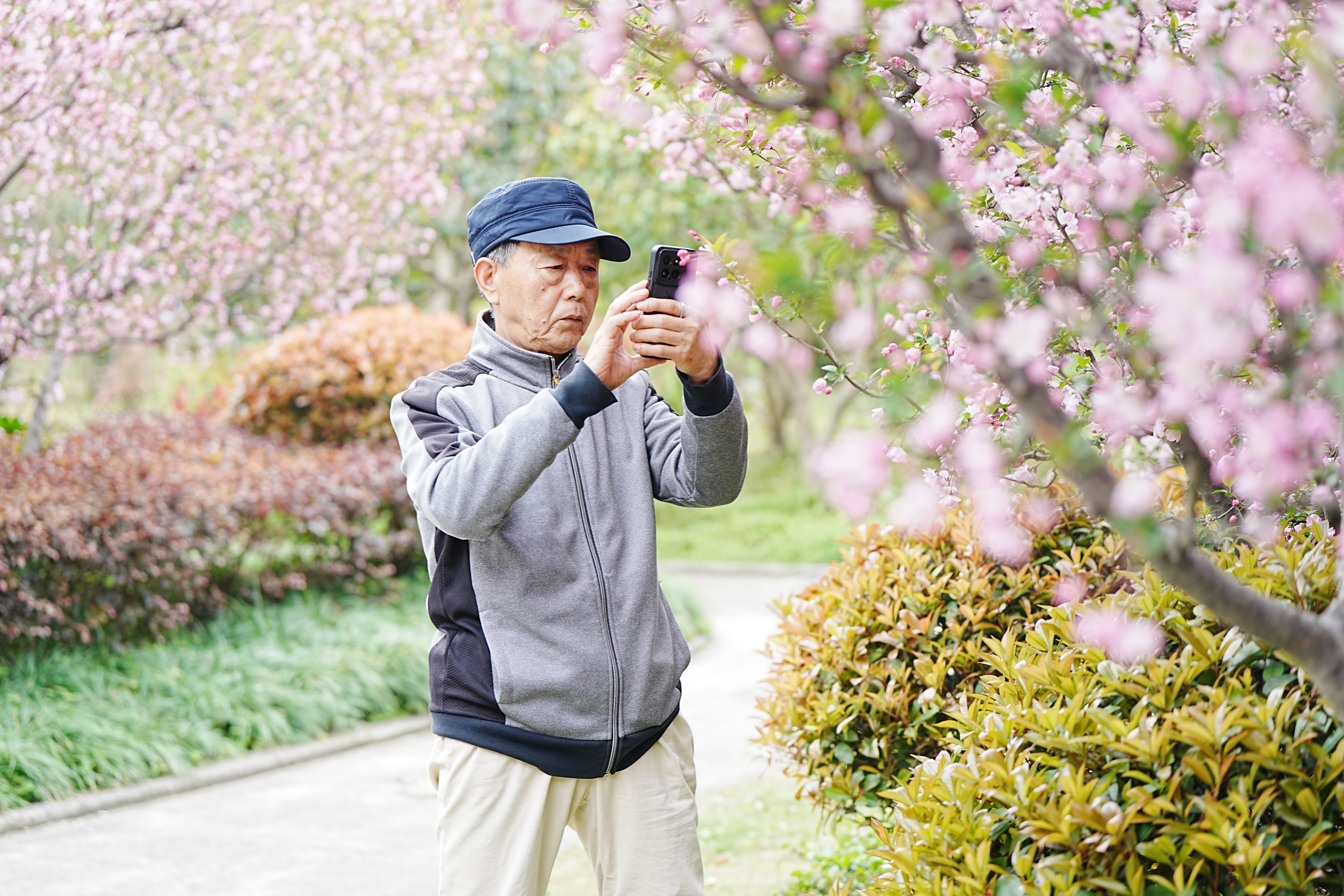 而另外一位专程开着残疾车赶来的摄影爱好者则在按下快门之余对记者连连称赞其海棠花的气质,“它不仅有桃花樱花的柔美,更有一种其他花卉少见的‘阳刚气’。是我最喜欢拍摄的花朵。”