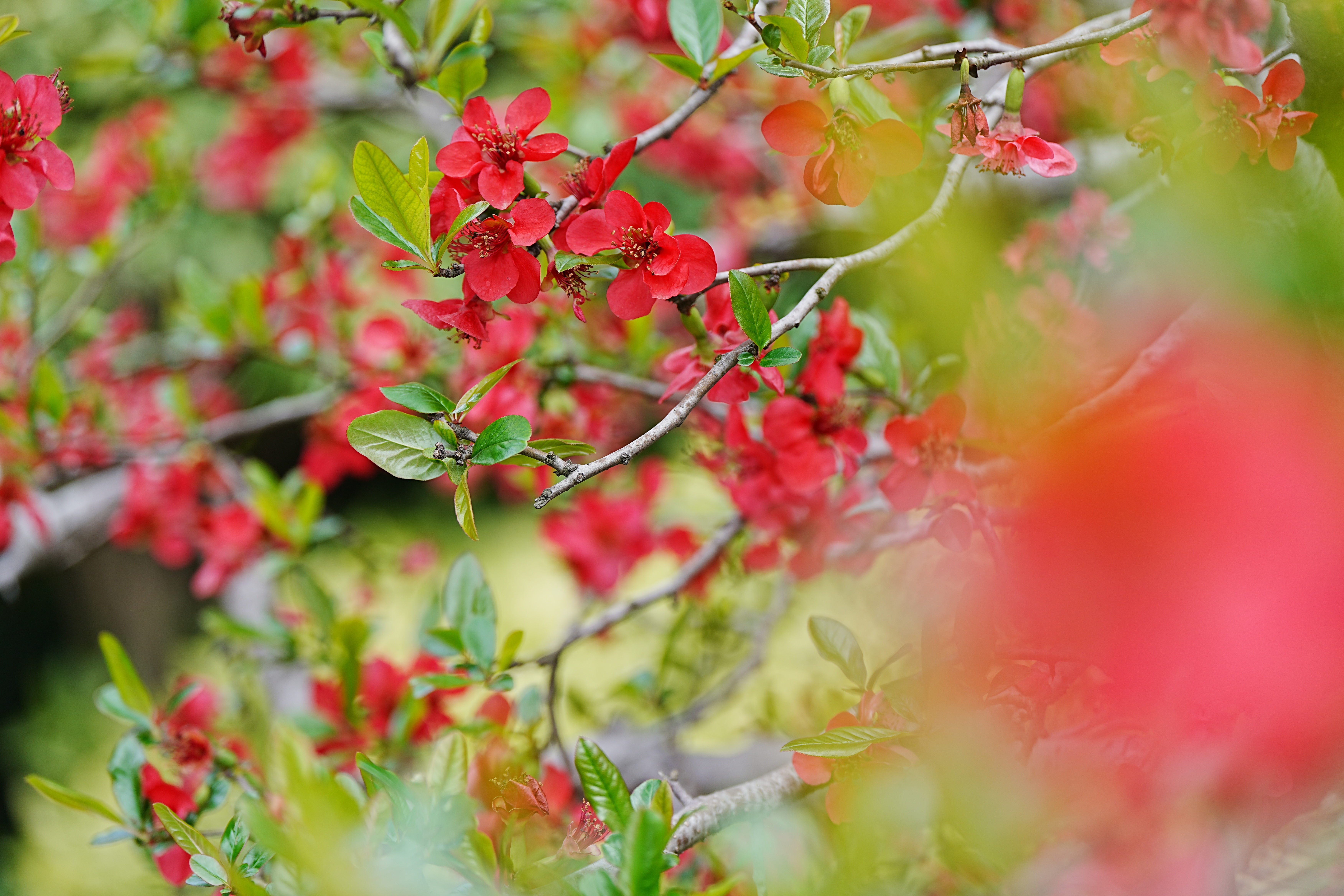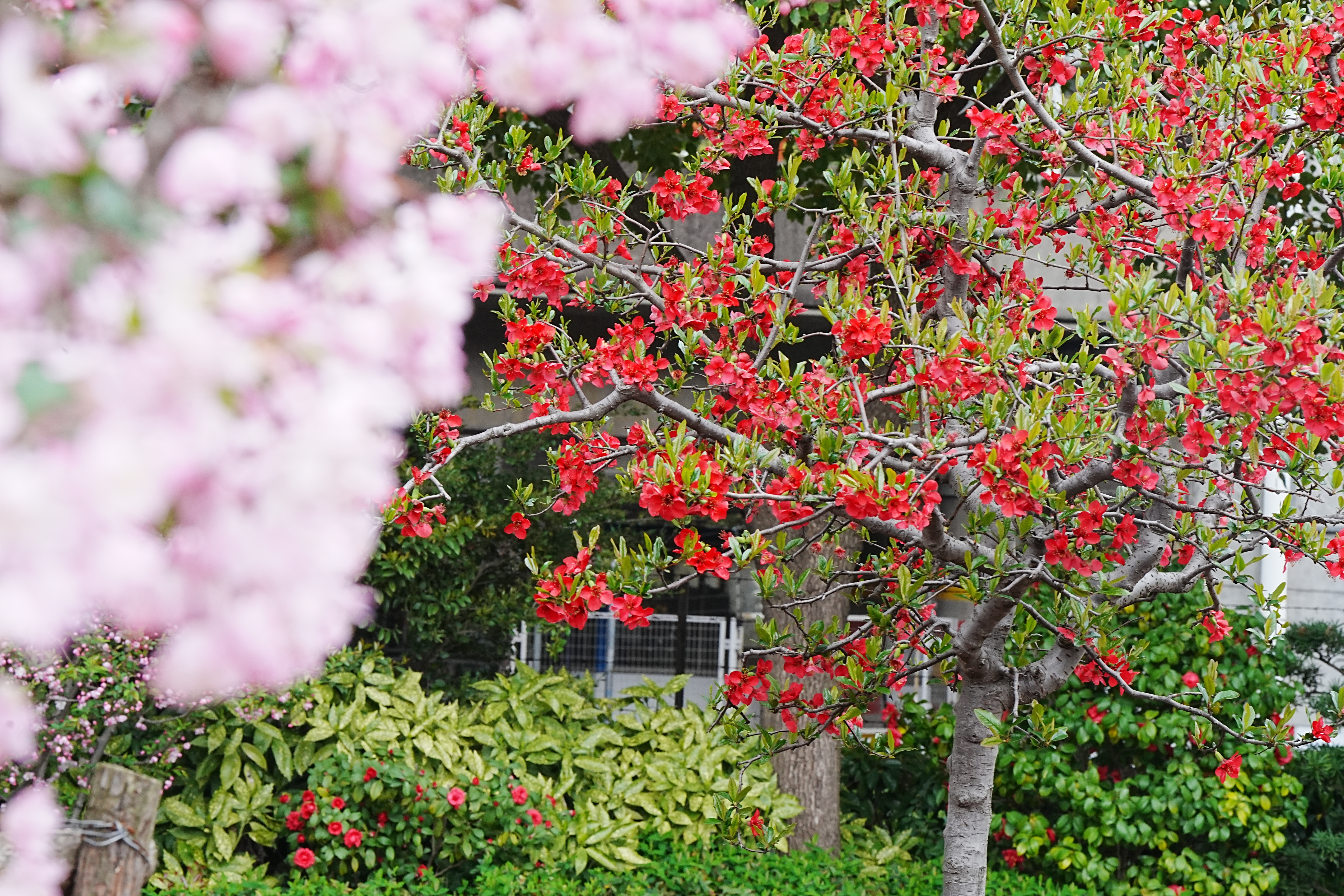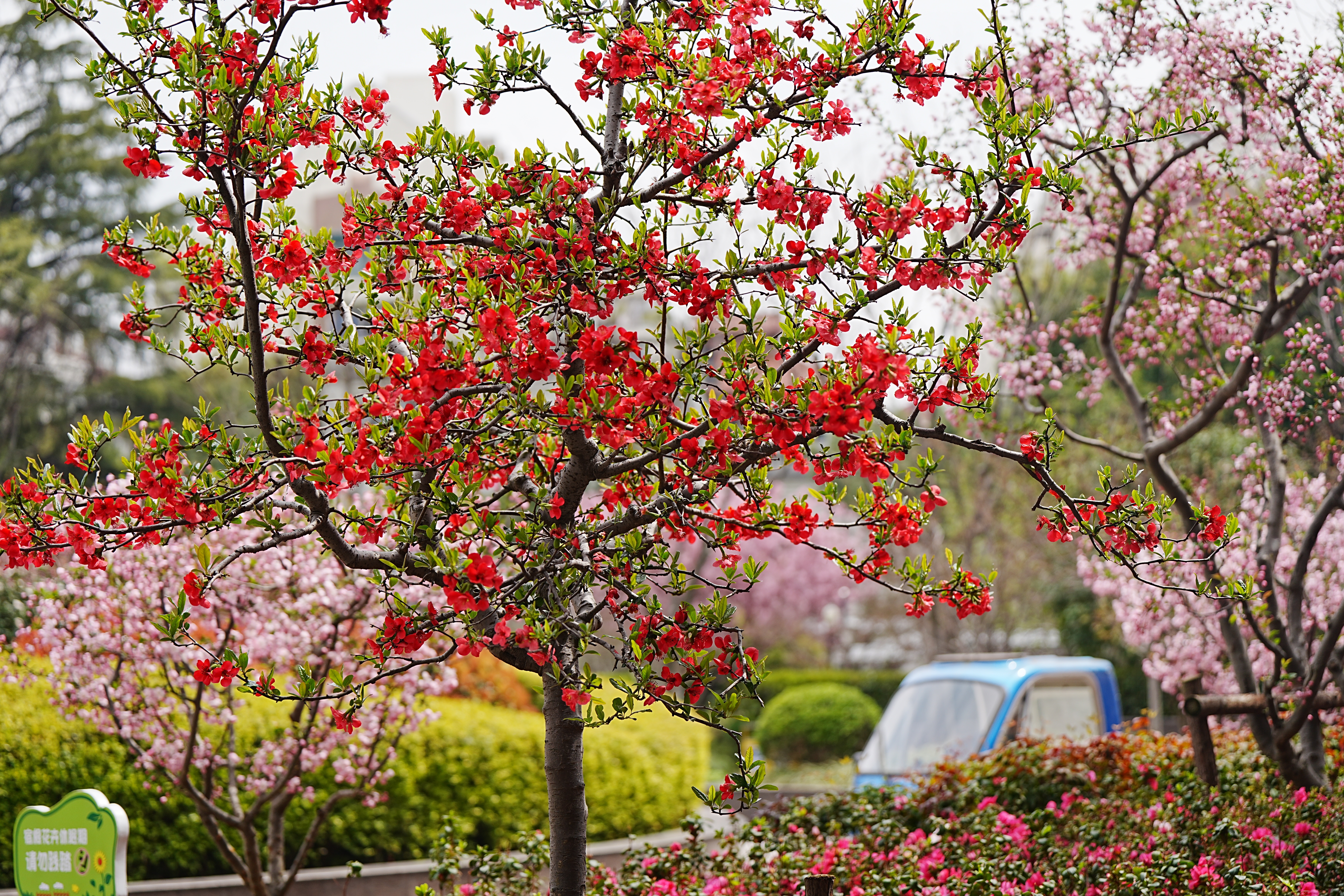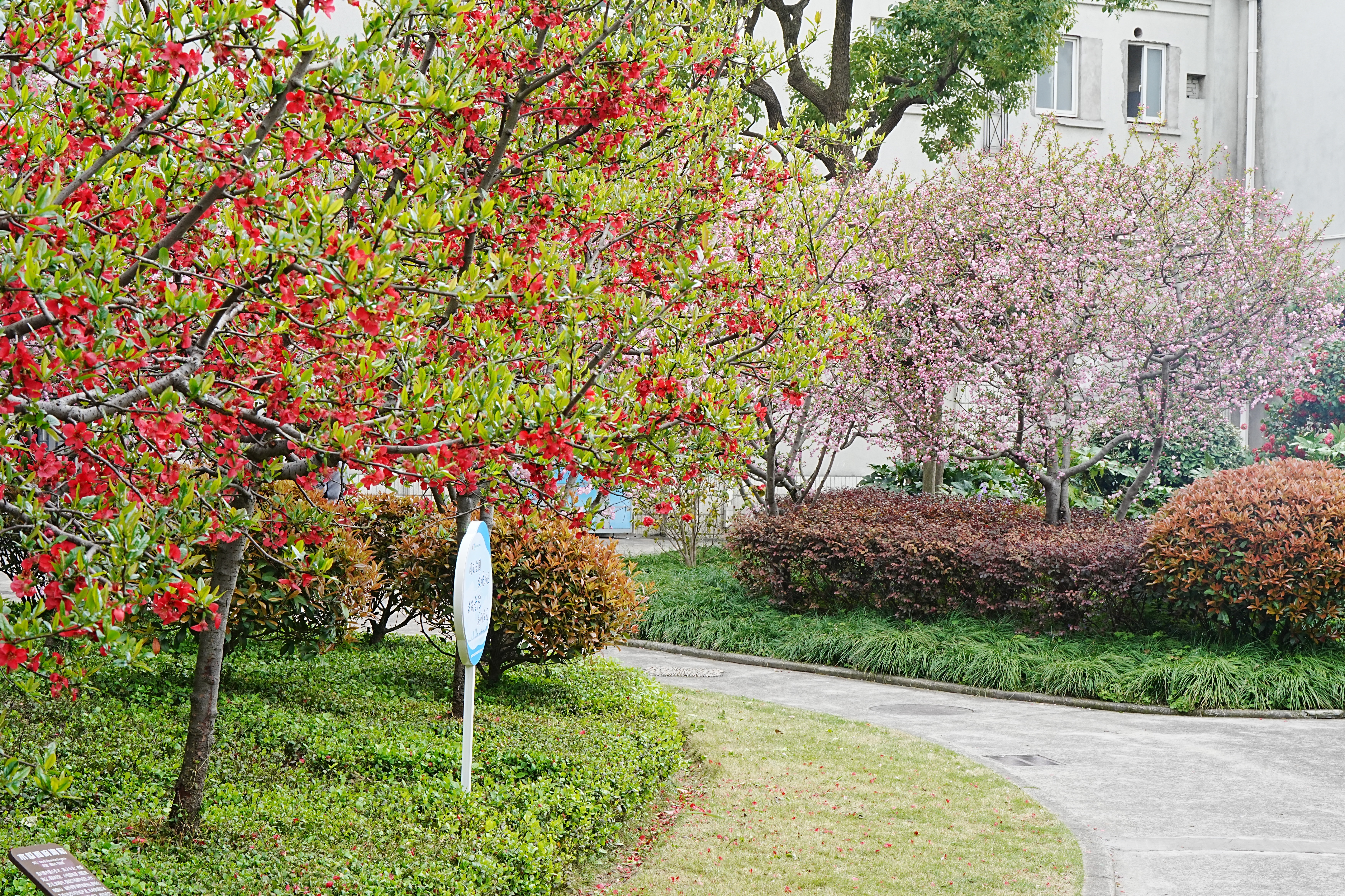 目前,海棠公园内的20多个品种、近400株海棠逐渐迎来观赏期。普陀区园开公司养护部总监须磊告诉记者,现阶段海棠花开正艳的是贴梗海棠和垂丝海棠,前者浓烈的红与后者娇嫩的粉交相辉映,宛如两位优雅的舞者。而到了四月初,还会有北美海棠、湖北海棠等相继开放,“现在起可以算是海棠的最佳赏花期了,预计海棠公园内的海棠花花期将一直持续到四月中下旬。”