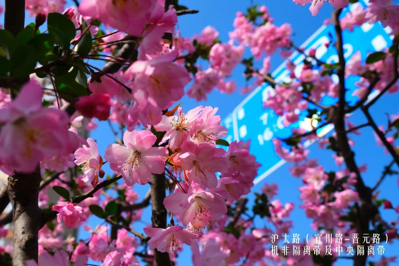 除公园外,静安区还在许多道路和绿地内种植了海棠,推荐点位沪太路(宜川路-晋城路)。